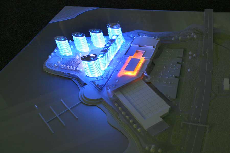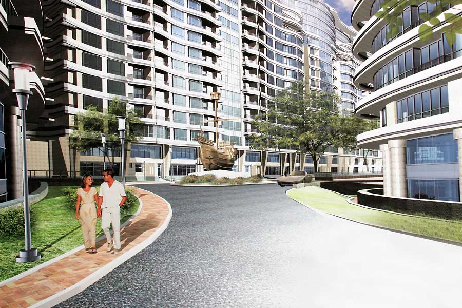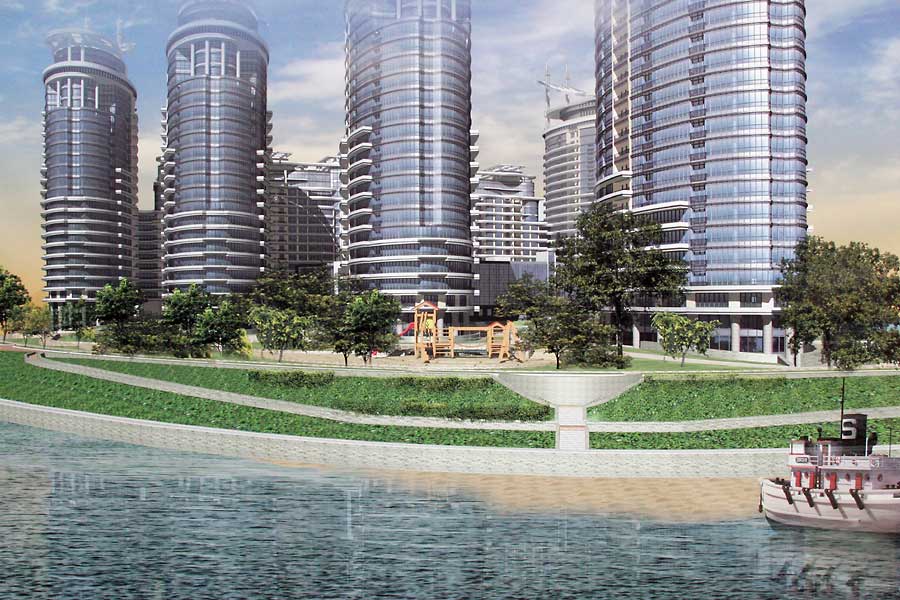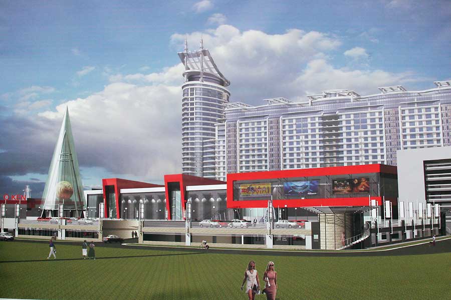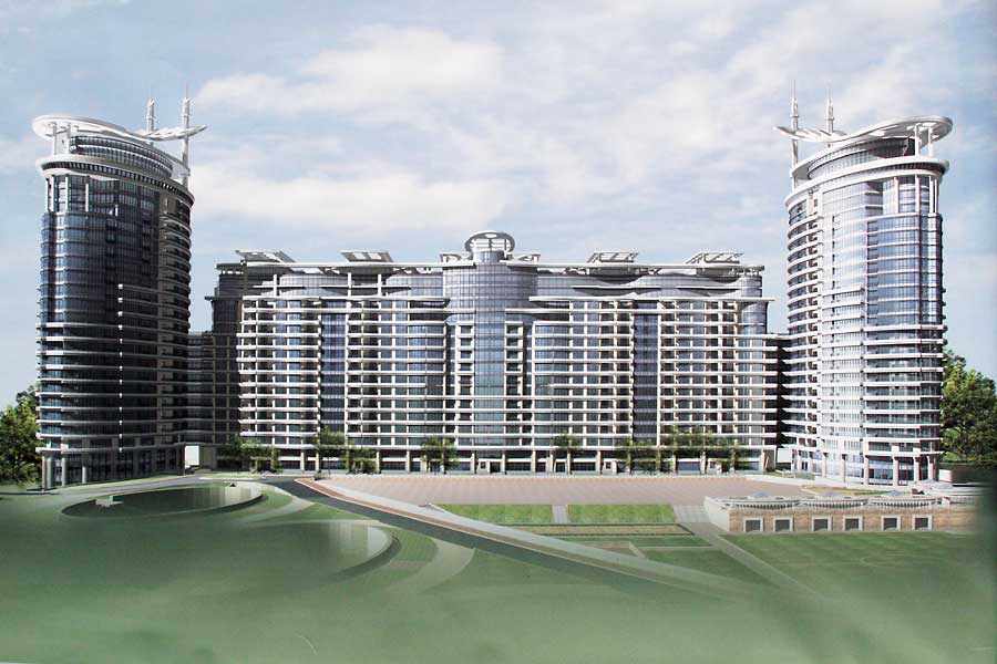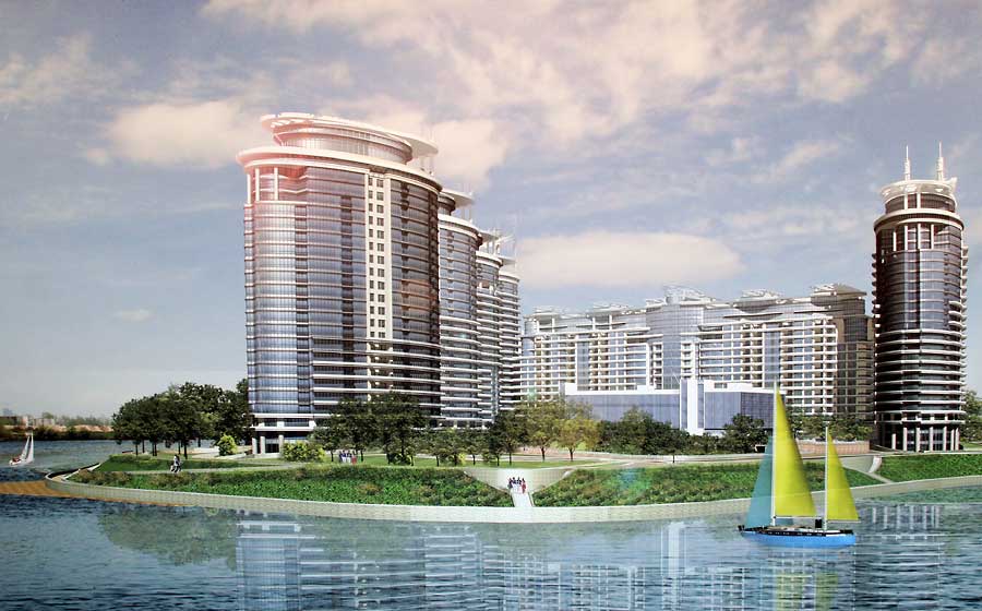 В новом варианте проекта: изменено расположение 23-х этажного, 22-х этажного и 15-ти этажного жилых зданий, объекты соцкультбыта собраны в единый комплекс, в котором кроме сети разнообразных магазинов размещены 10 кинозалов. Площадь, занимаемая комплексом, составляет 14 гектаров. Общее количество квартир – 1060. Предусмотрены автостоянки закрытого и открытого типа на 3300 мест. Особое внимание уделено зонам отдыха, детским площадкам, а также детскому саду и общеобразовательной школе.