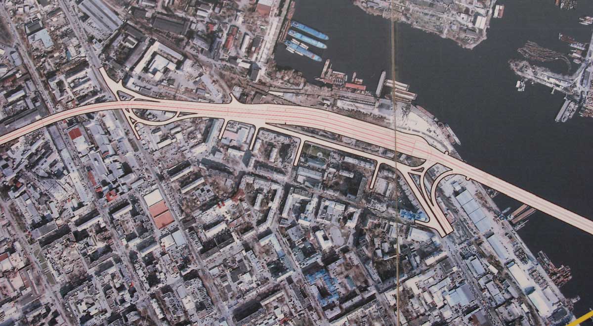 Новый вариант правобережного подхода к Подольскому мостовому переходу через р. Днепр, включает в себя двухуровневый подземный тоннель длиной 1,5 км, начинающийся в районе Черновола улицы и заканчивающийся в районе Фрунзе улицы с продолжением в виде эстакады.