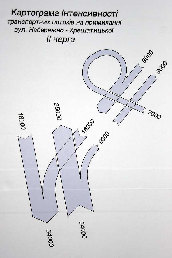 Проект рассматривается повторно. Представлены два варианта подхода к Подольскому мостовому переходу через р. Днепр: эстакадный, стоимостью около 20-ти млн. гр. и тоннельный, стоимостью около 40-ка млн. гр. Докладчик отдает предпочтение первому варианту - эстакадному, поскольку этот проект не только дешевле, но и не требует дополнительных затрат на замораживание грунта и применение специальной проходческой техники.
