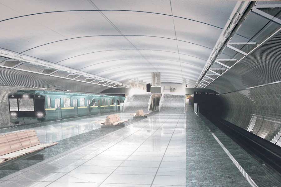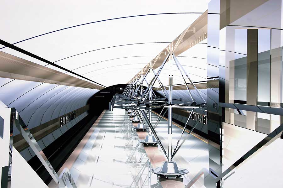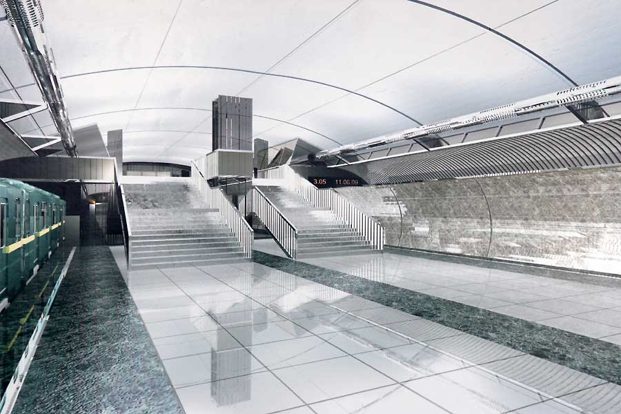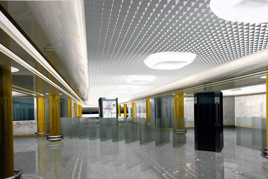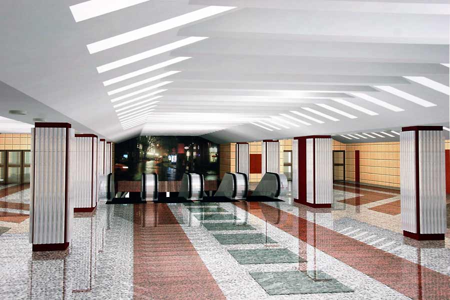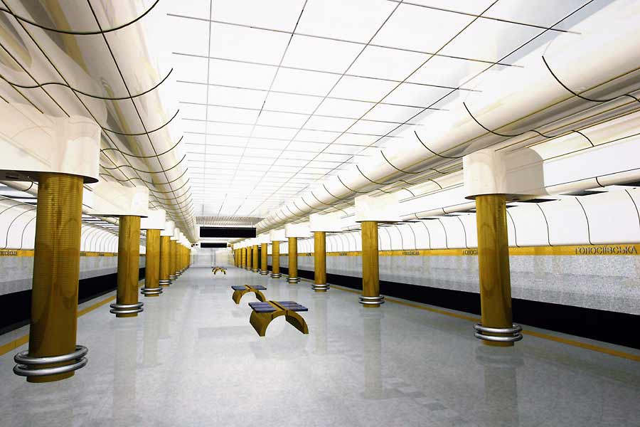 Проект интерьеров станций метрополитена Куреневско-Красноармейской линии, на участке от станции «Лыбидская» до станции «Выставочный центр». Голосеевский район г. Киева.