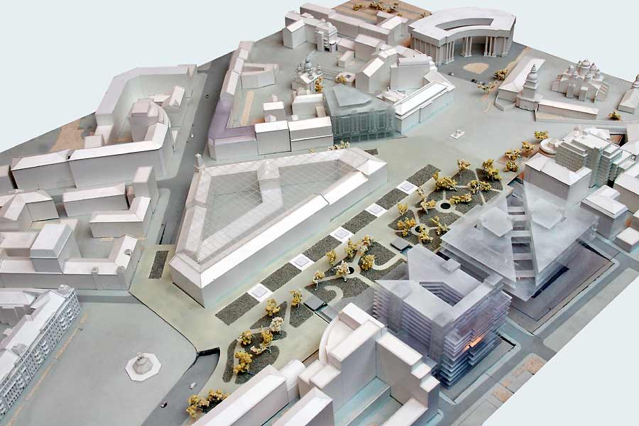 Предлагаемый проект неоднократно представлялся на заседаниях Градостроительного совета на протяжении 2002-2004гг., однако, за прошедшее время произошла смена заказчика. Это связано с предложенным, в свое время Градостроительным советом, уменьшением этажности запроектированного здания. МИД, как заказчик объекта, счел это предложение для себя неприемлемым и передал все свои права фирме «Ярославов Вал», которая и является на сегодняшний день заказчиком.