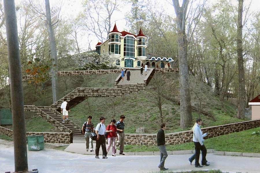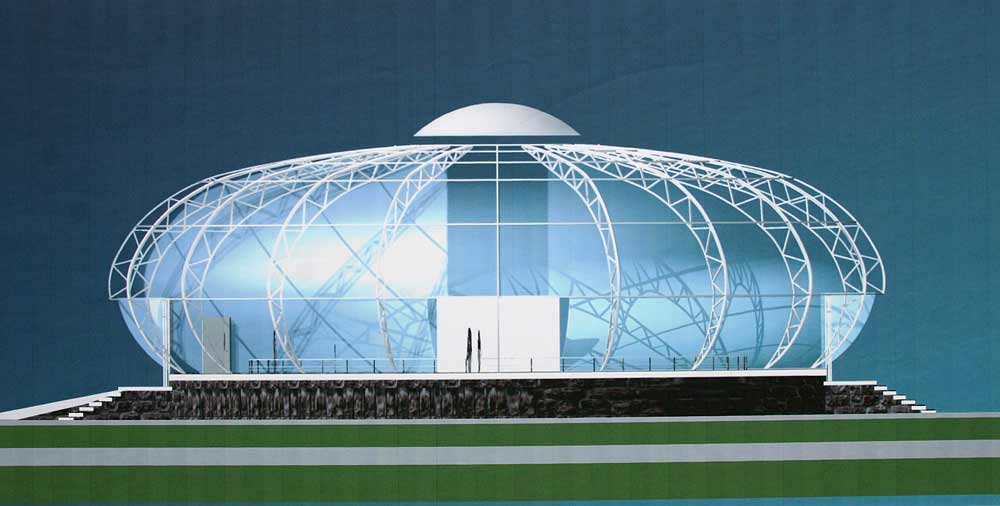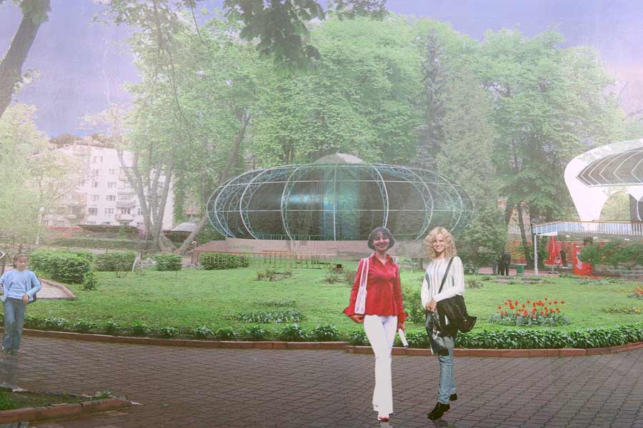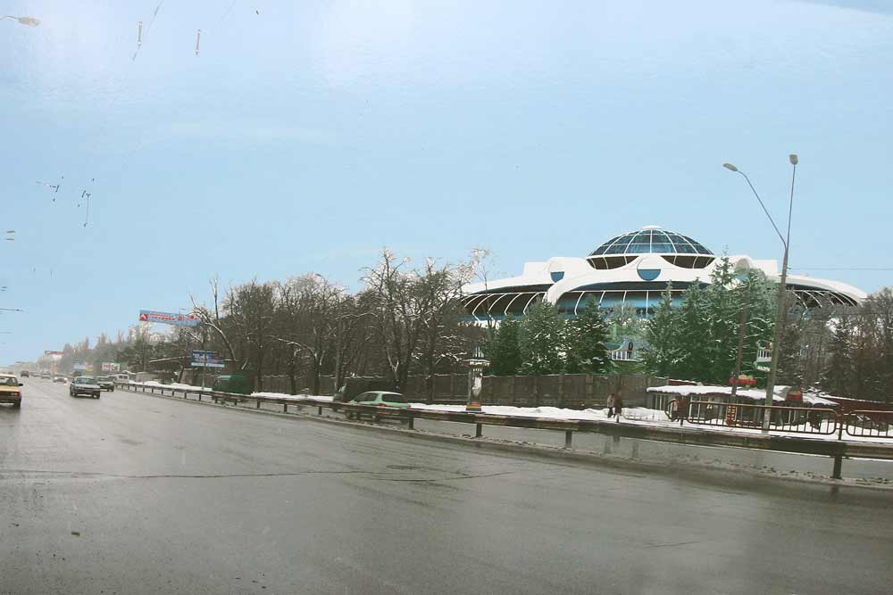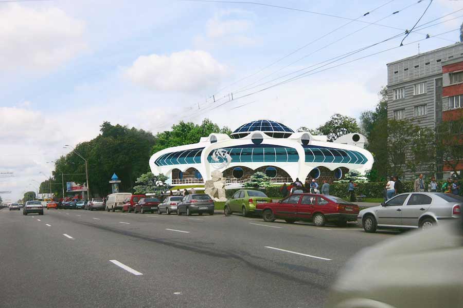 Паркинг располагается на берегу Днепра и выбранное для него место можно считать неудачным. Киноконцертный зал размещен так же неудачно – на большом расстоянии от станции метрополитена.