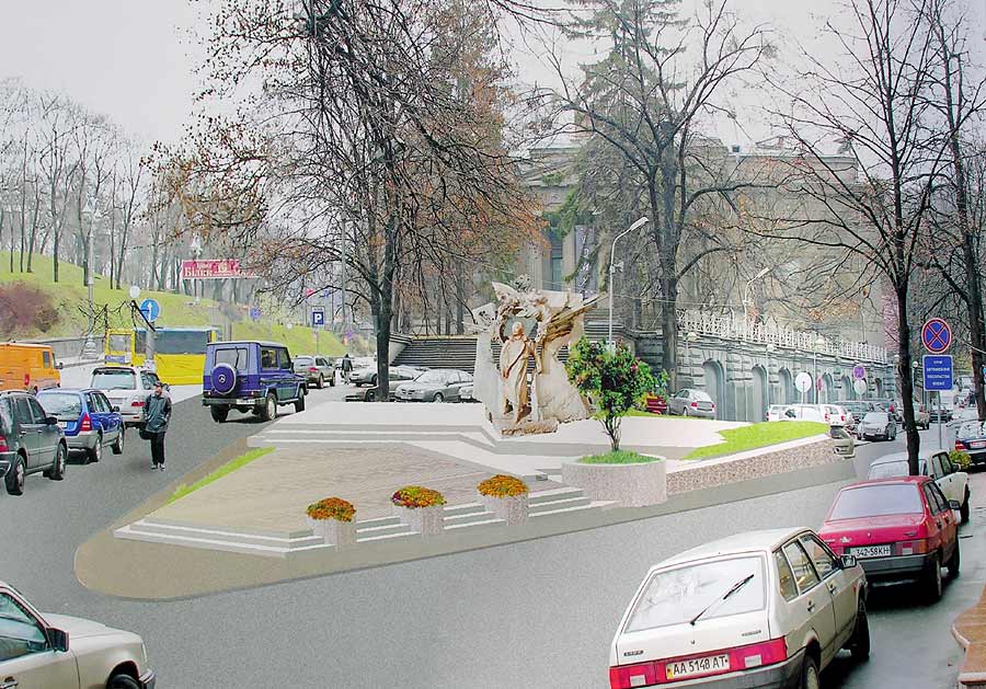 В результате проведенного в 2005г. конкурса эта работа скульптора Богдана Мазура, получила призовое место и была утверждена к установке. Выполненный в бронзе памятный знак, высотой 4,7м., по проекту предполагается разместить перед музеем Украинского искусства на ул. М. Грушевского.