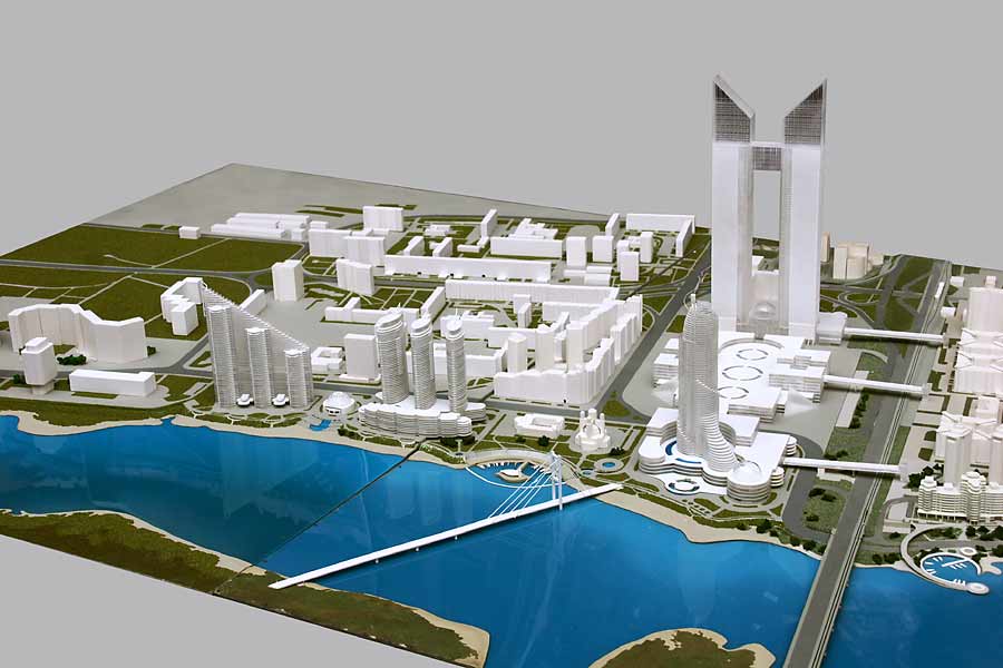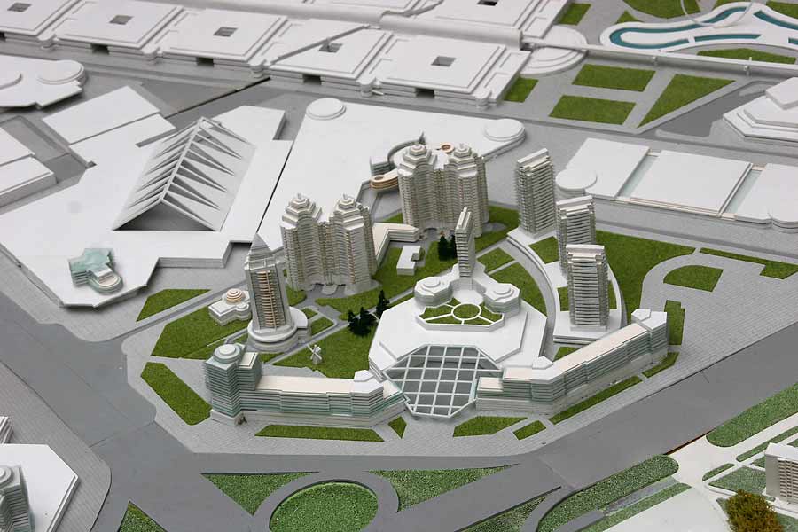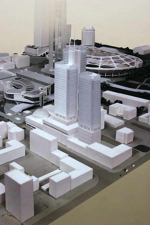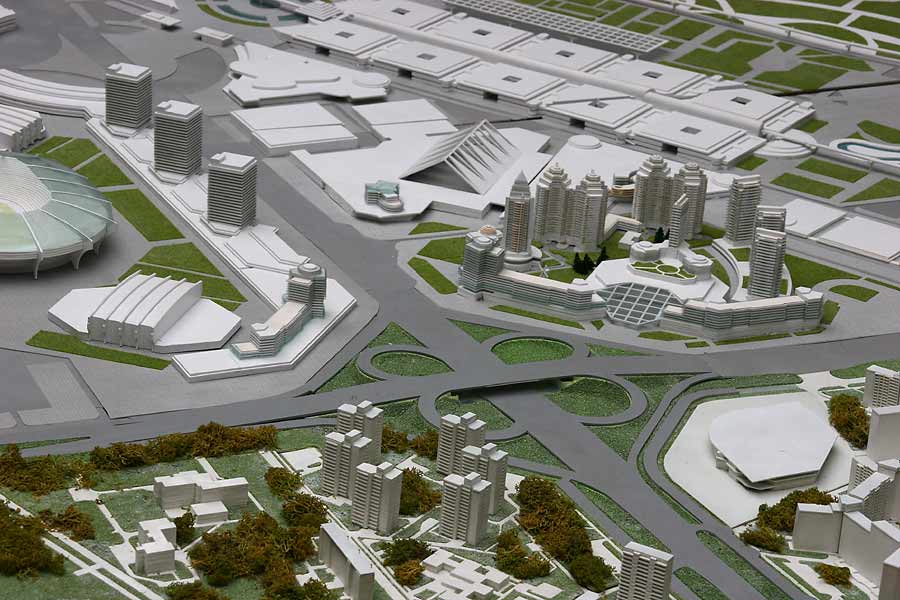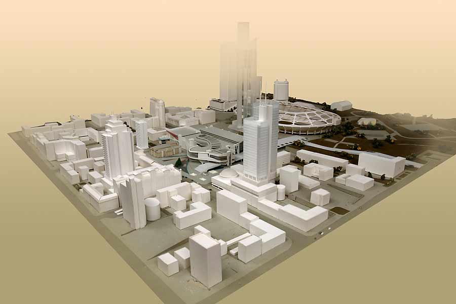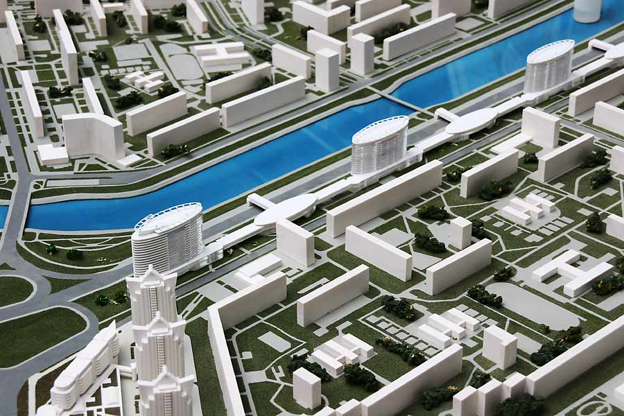 Для обоснования возможности строительства и определения параметров трёх многофункциональных комплексов, авторским коллективом был представлен градостроительный макет "Левобережного общественного центра" в составе всей левобережной части Киева.