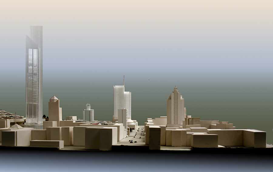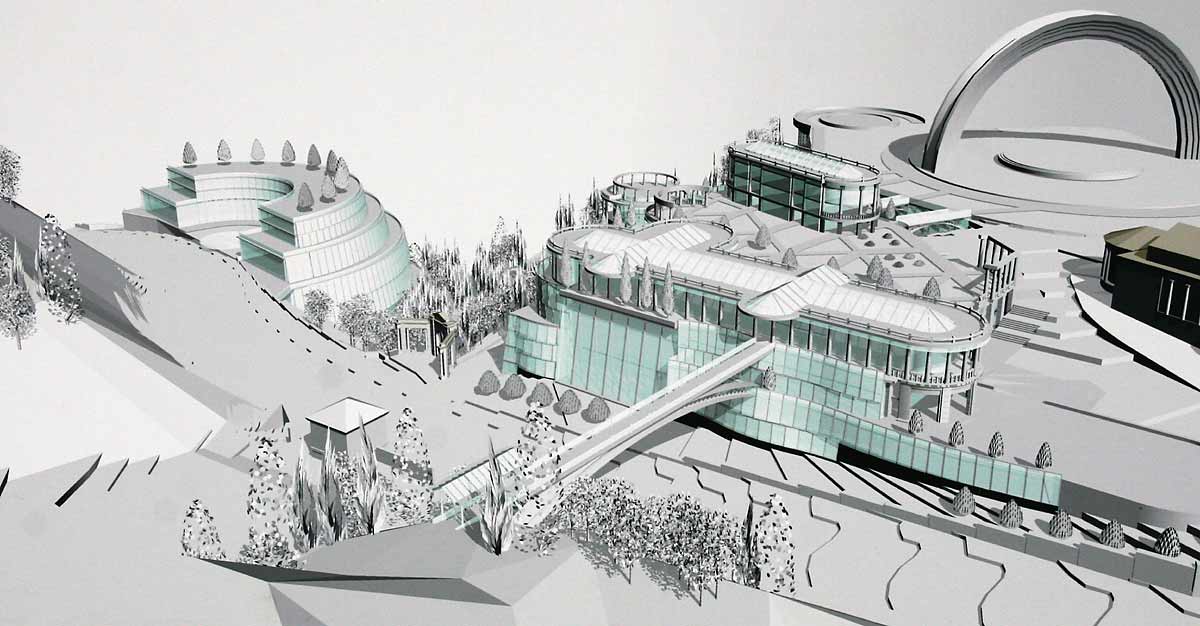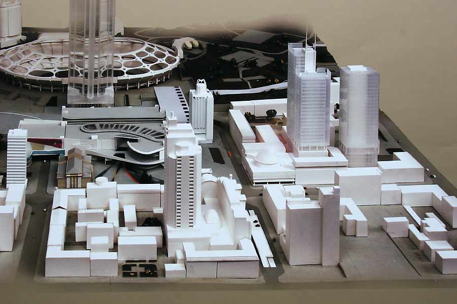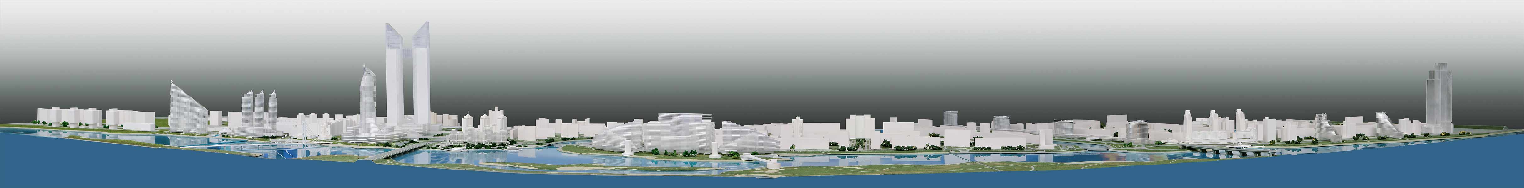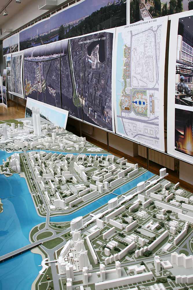 Для обоснования возможности строительства и определения параметров трёх многофункциональных комплексов, авторским коллективом был представлен градостроительный макет "Левобережного общественного центра" в составе всей левобережной части Киева.