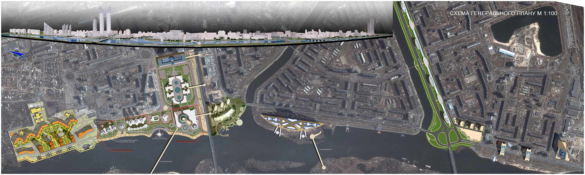 Такой вариант решения проблемы застройки левого берега Днепра окажет неоценимую помощь архитекторам, работающим в этом районе Киева над своими проектами.