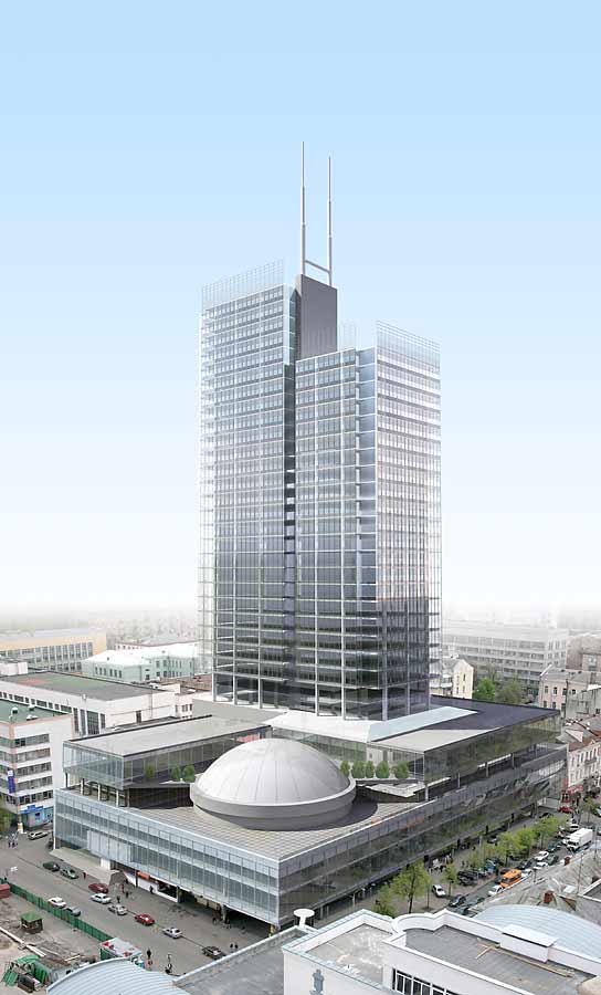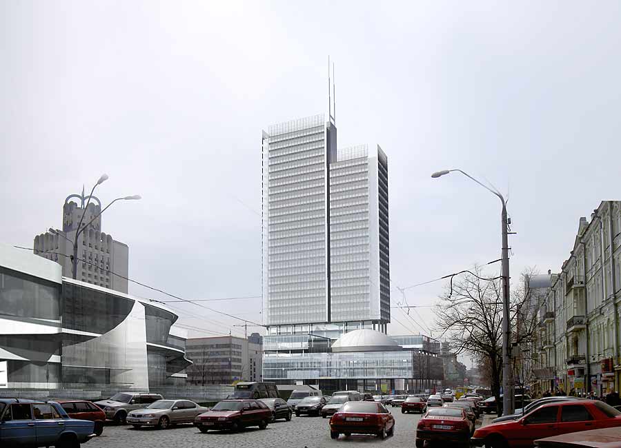 В. Ежов проинформировал присутствующих о том, что в настоящее время в Главном управлении градостроительства и архитектуры разрабатывается схема размещения в исторической части Киева высотных объектов. По его мнению, следует подождать до окончания работ над этой схемой, а пока ограничиться строительством здания, не выше 22-х этажей.
