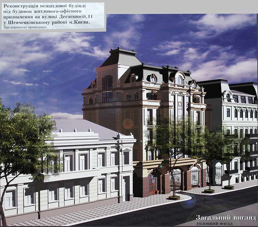 Предварительные проектные предложения реконструкции не жилого здания под офисно - жилой дом. Шевченковский район г. Киева. Ул. Десятинная, 11.