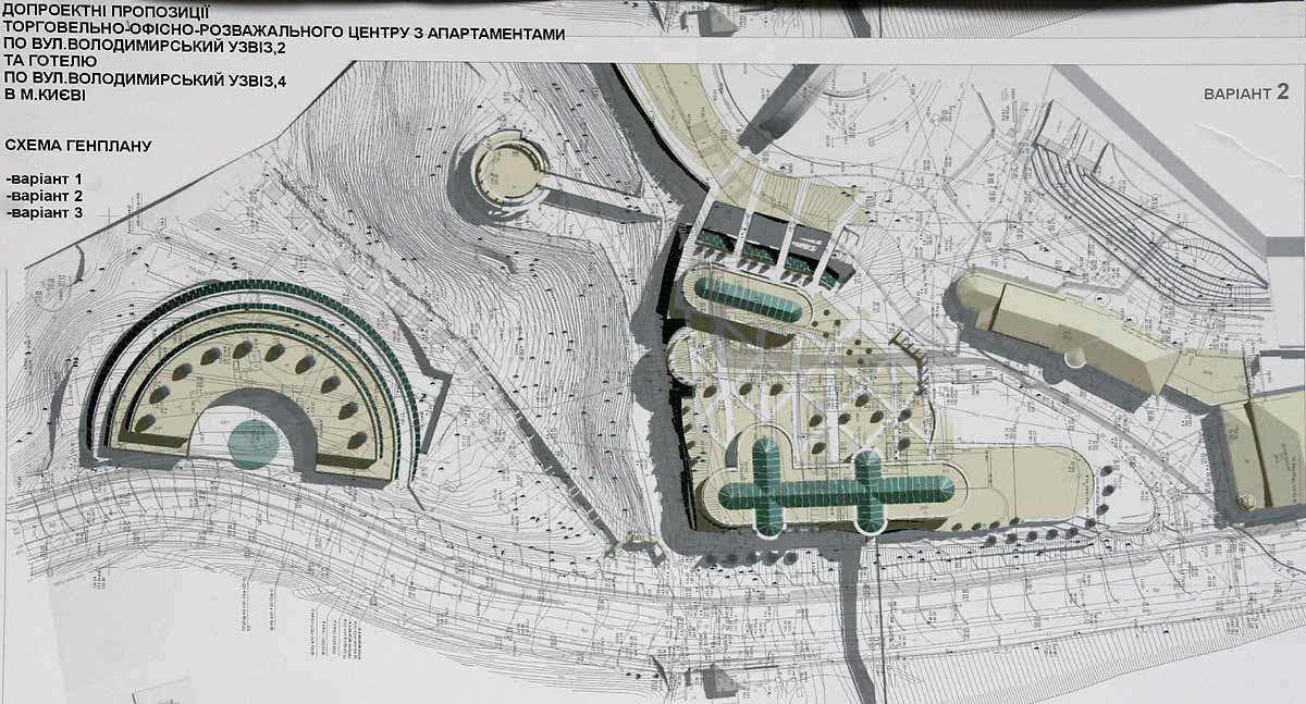 Концепция размещения строительных объектов на территории, примыкающей к Владимирскому спуску в г. Киеве (внепланово).