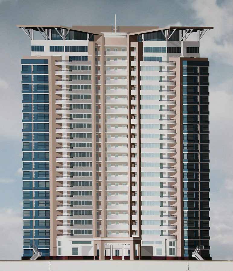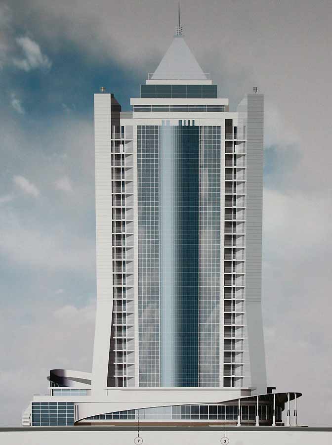 А. Карминский отметил, что в квартале, который занимает комплекс, нет ни одного свободного квадратного метра земли и построить в этом месте новое двухсекционное здание, высотой 27 и 33 этажа – огромная проблема. Возможно, для улучшения положения необходимо вместо первого этажа сделать свободное пространство с подъездами и подходами. Кроме того, следует согласовать с Управлением охраны памятников высотность здания и после этого снова рассмотреть проект.