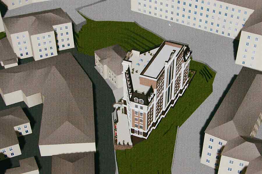После обсуждения работы было принято решение: рекомендовать проектантам рассмотреть возможность повышения этажности комплекса до 12 – 14 этажей и после согласования проекта с генеральным планом развития города продолжить его разработку.