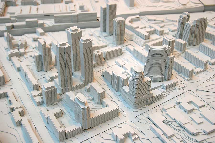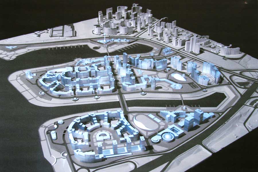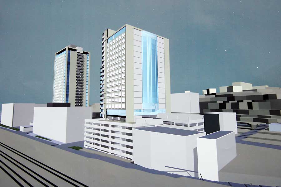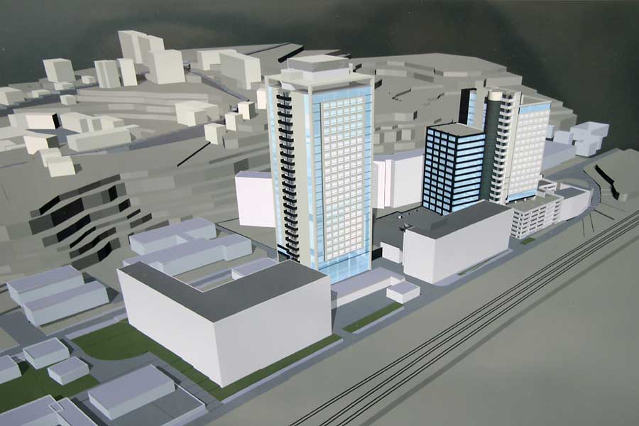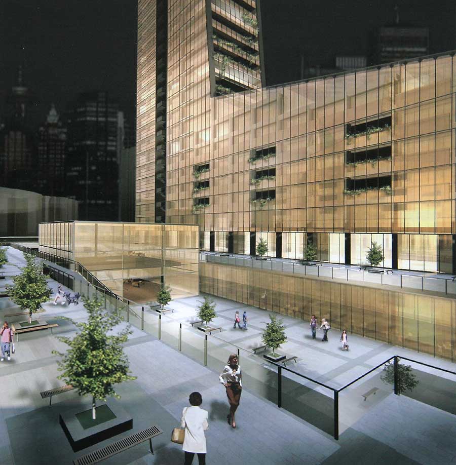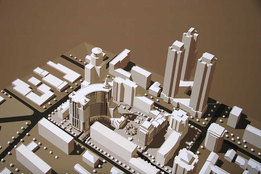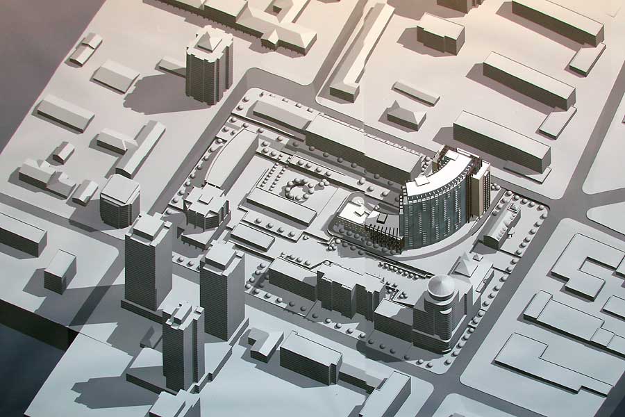 Все здания комплекса устанавливаются, на имеющий значительные размеры стилобат, в котором разместятся паркинги и торговые помещения.