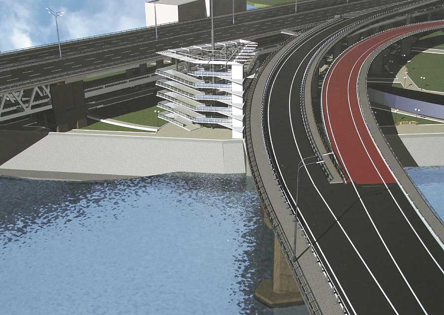 Речь идет о двух 10-ти этажных административных зданиях, симметрично располагаемых относительно оси улиц Нижний Вал и Верхний Вал. Под каждым зданием размещается одноуровневый подземный паркинг для 22-х автомобилей, кроме того, на уровне 1-го этажа устраивается закрытая автостоянка на 18 мест. Проектируемые территории, площадью 0,2га каждая, находятся в зоне строительства подходов к Подольскому мостовому переходу.