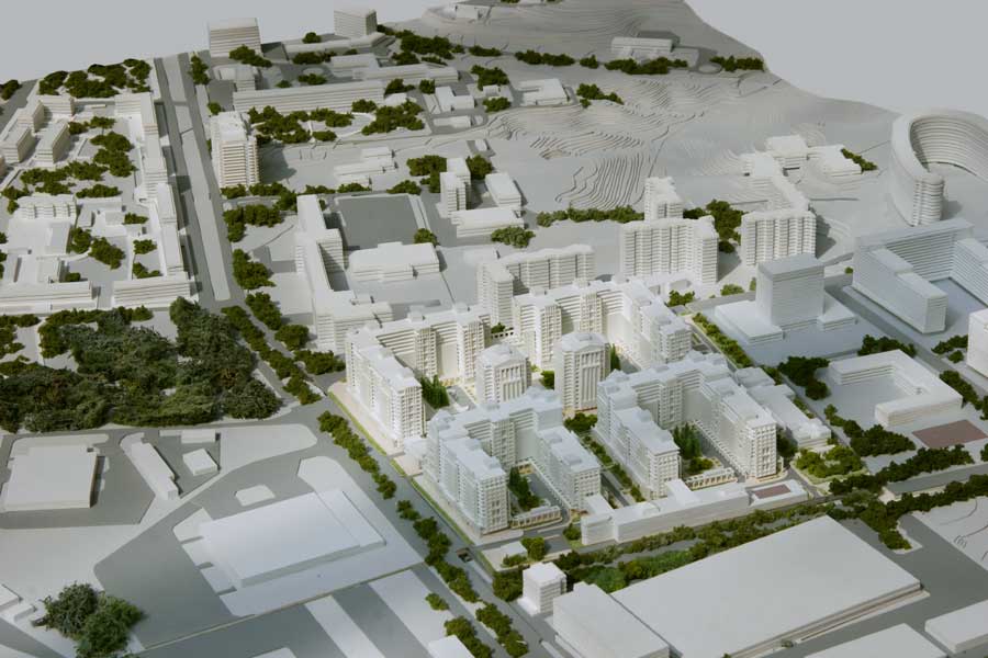 Строительство комплекса запроектировано на территории площадью 8га, расположенной между улицами Народного ополчения и Ф. Эрнста. Высотность зданий составляет 9-12-13-14 этажей и обусловлена ограничениями, связанными с находящейся в непосредственной близости от комплекса «зоной подлета» аэропорта «Жуляны».