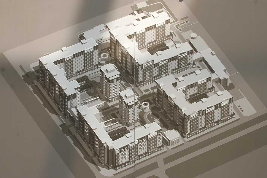 В состав комплекса входят также офисные вставки и детские дошкольные учреждения.