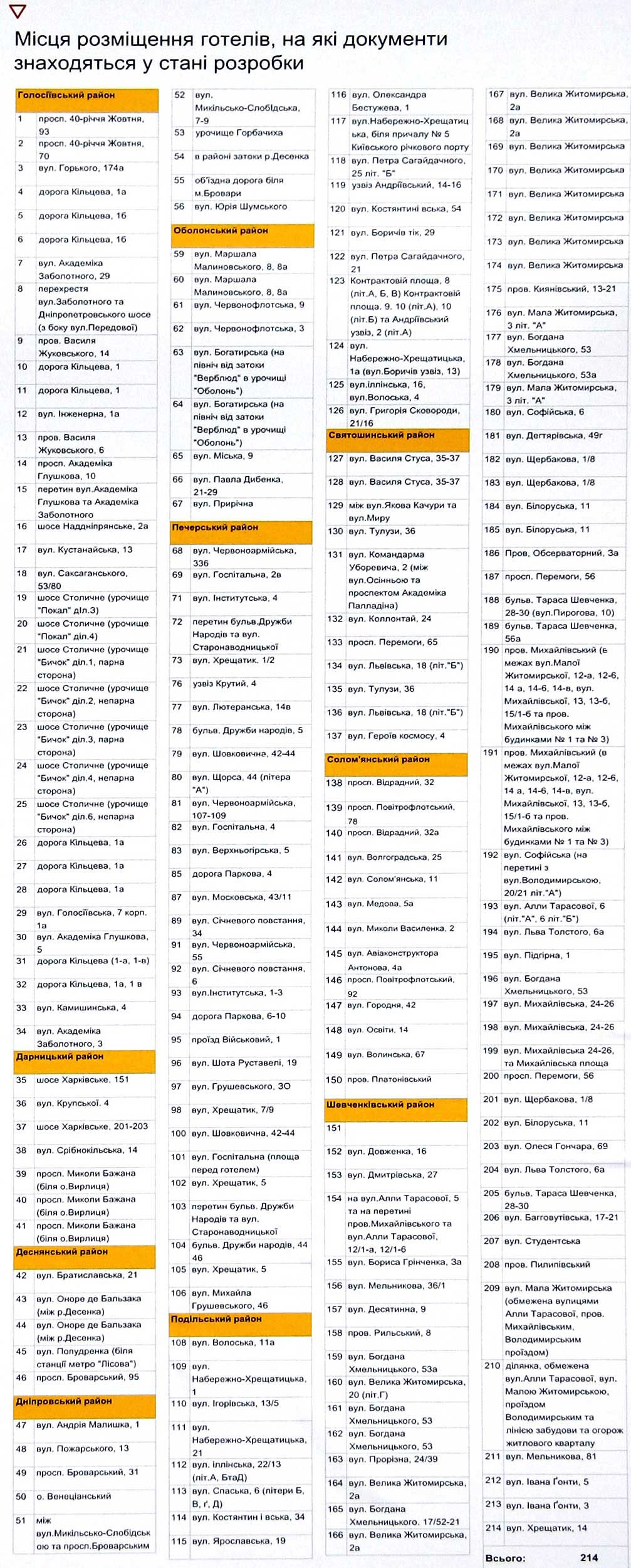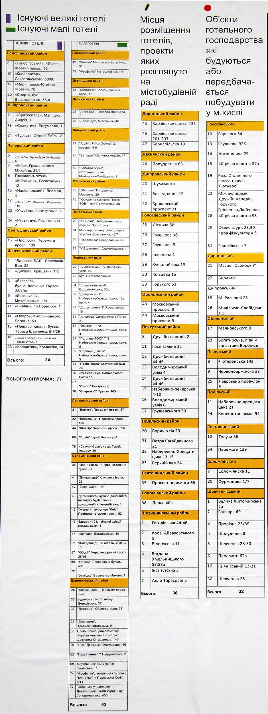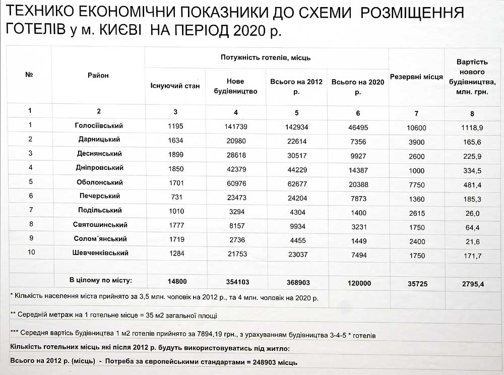 Схема размещения гостиниц в городе Киеве на период до 2020 года.