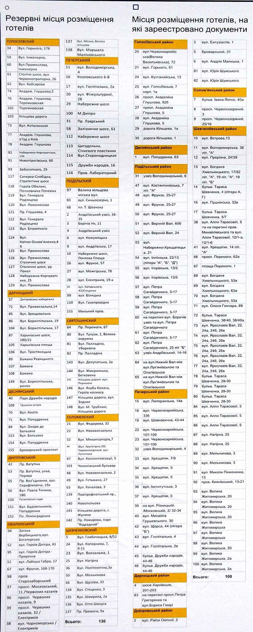 Таблица с адресами.