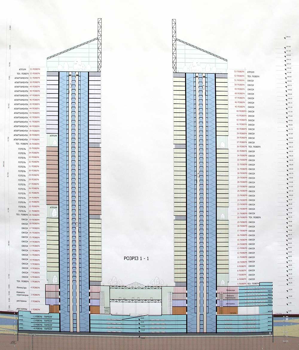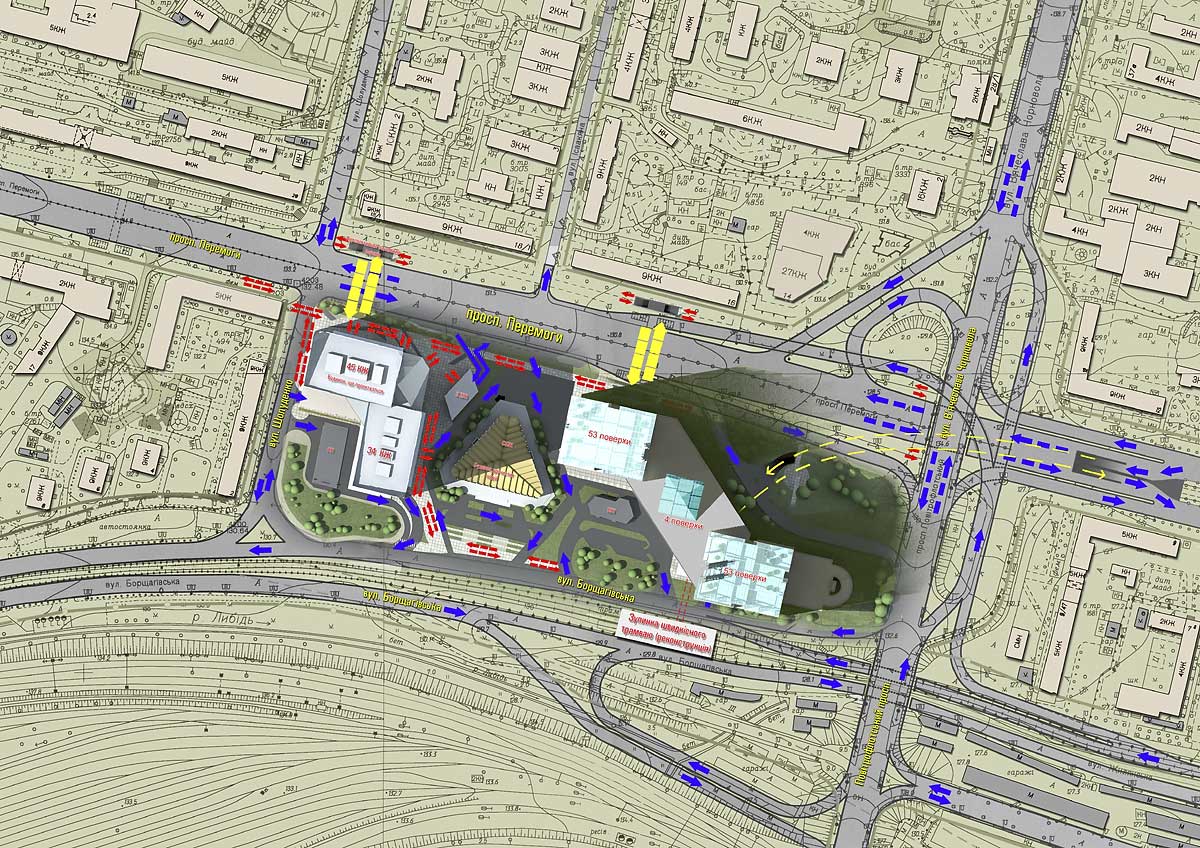 Проект строительства общественного торгово-офисного, гостиничного комплекса и апартаментов повышенной комфортности с подземным паркингом и благоустройством ландшафтной зоны. Шевченковский район г. Киева. Пересечение ул. Борщаговской и Воздухофлотского проспекта.