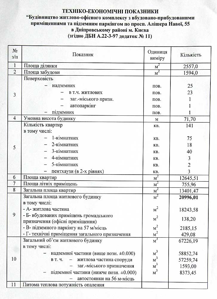 Проект строительства жилищно-офисного комплекса со встроено-пристроенными помещениями и подземным паркингом. Днепровский район г. Киева.