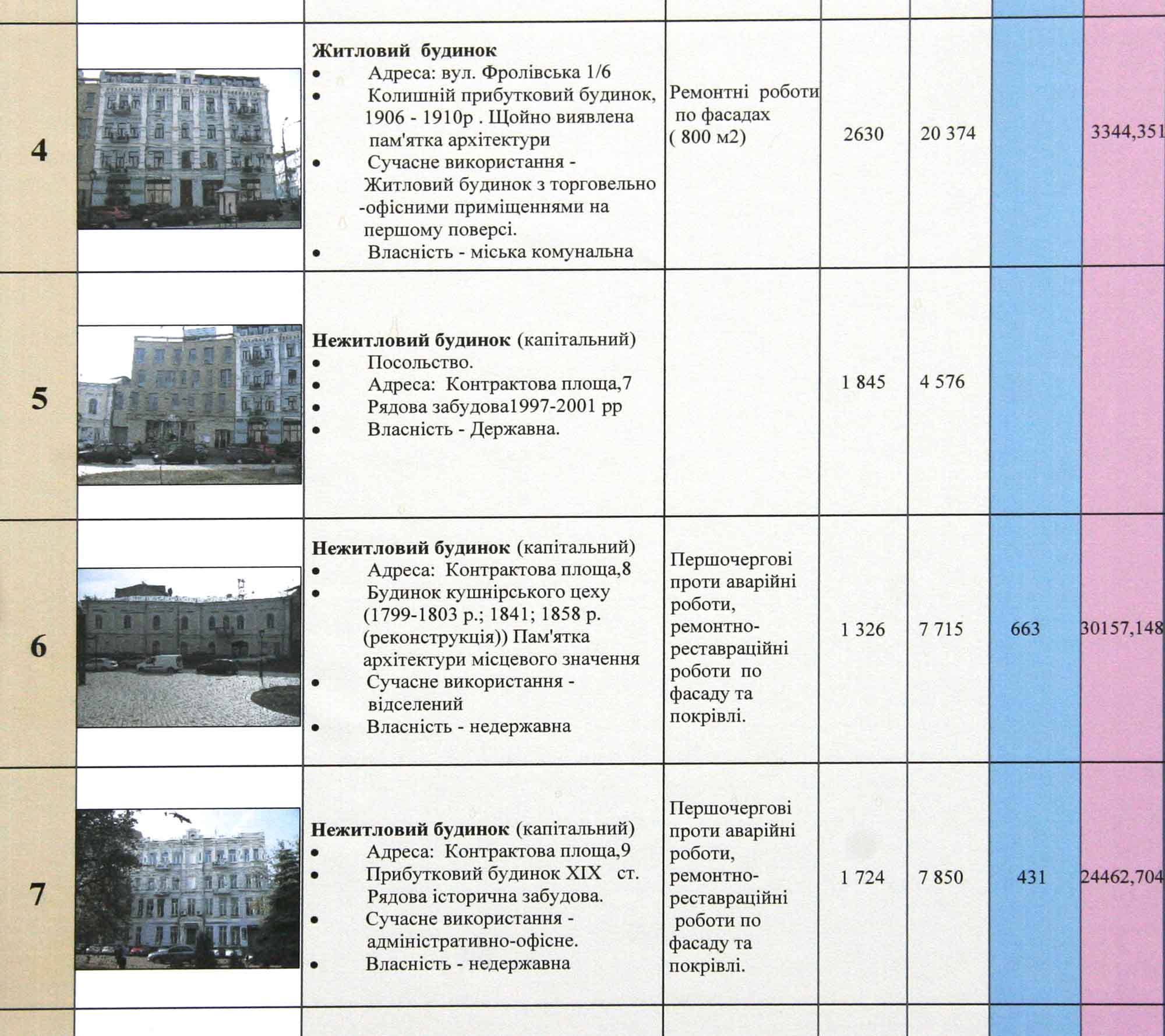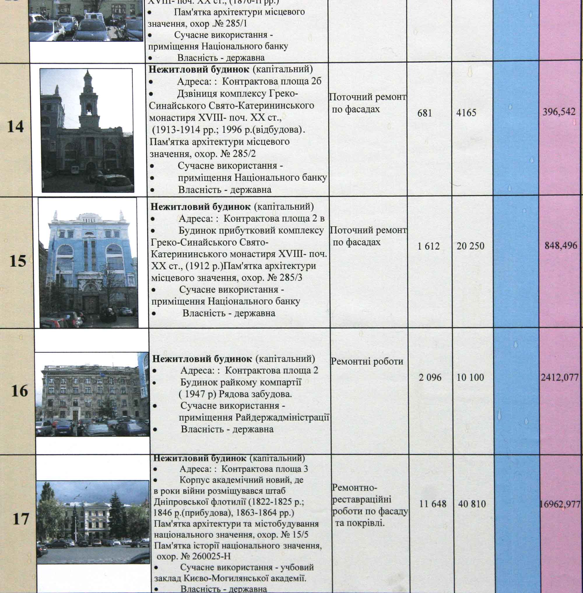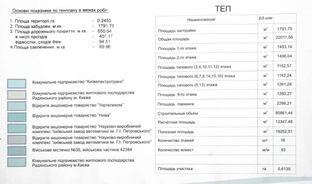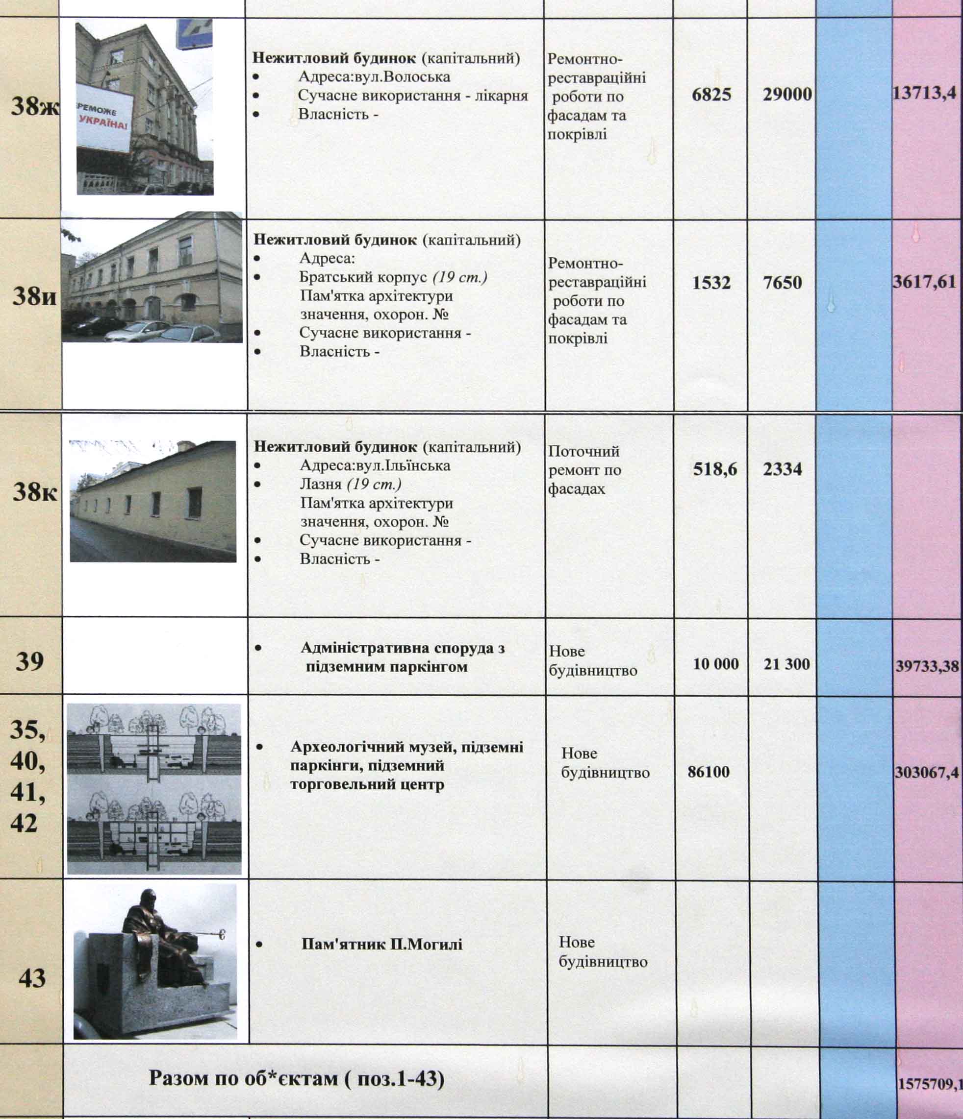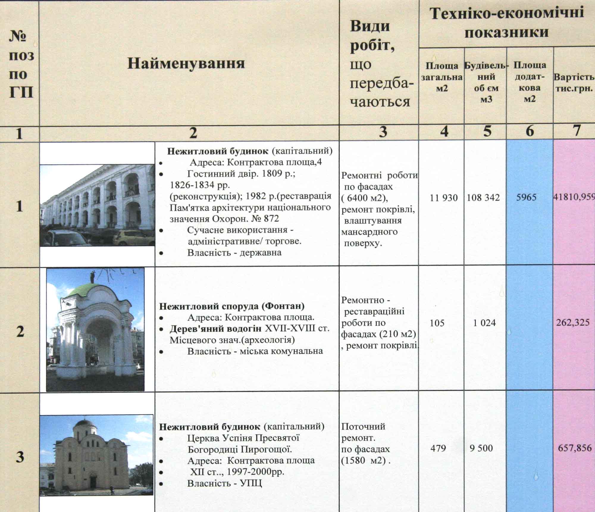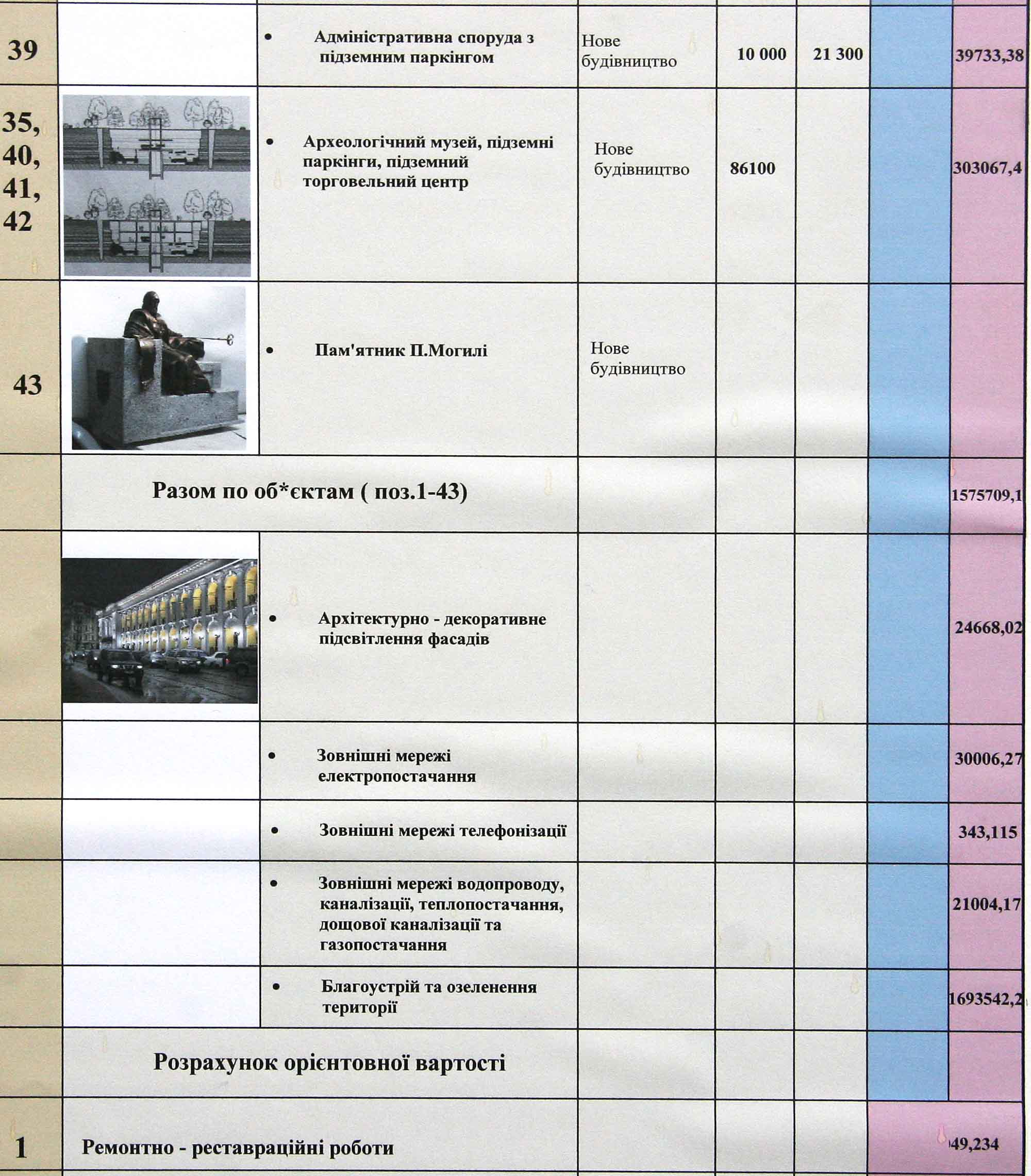 ТЭП по реконструкции Контрактовой площади (таблица 16 частей)