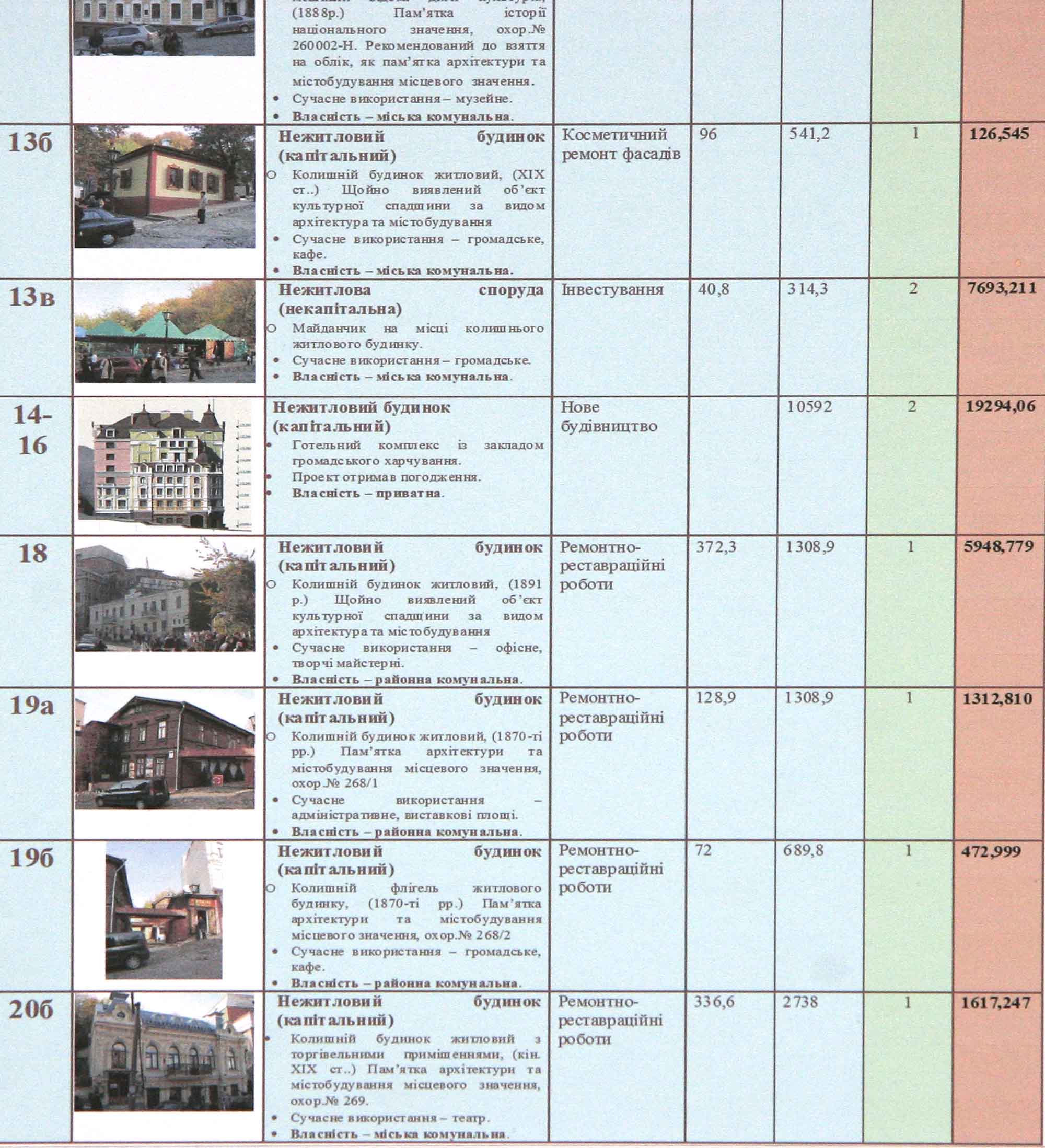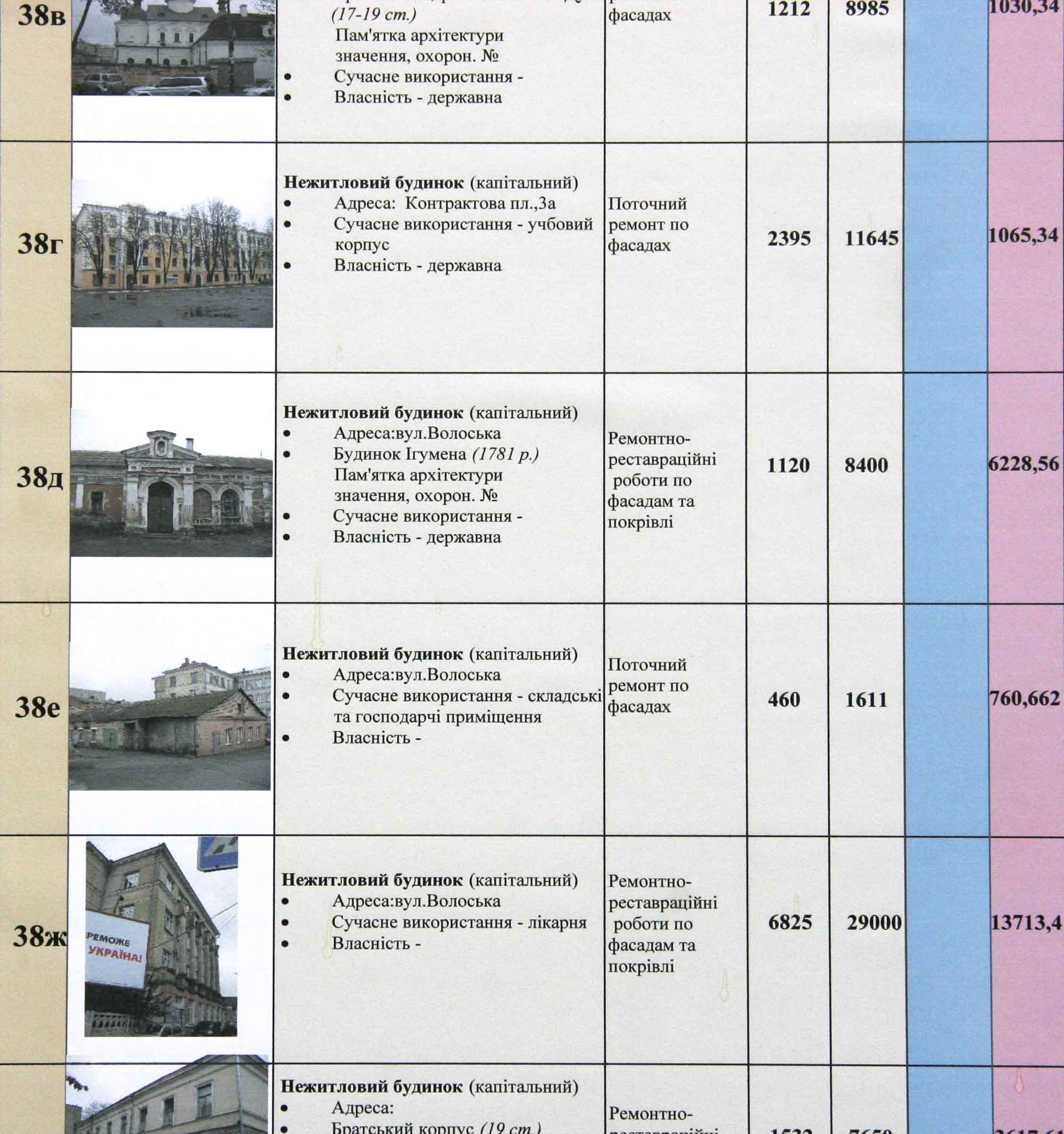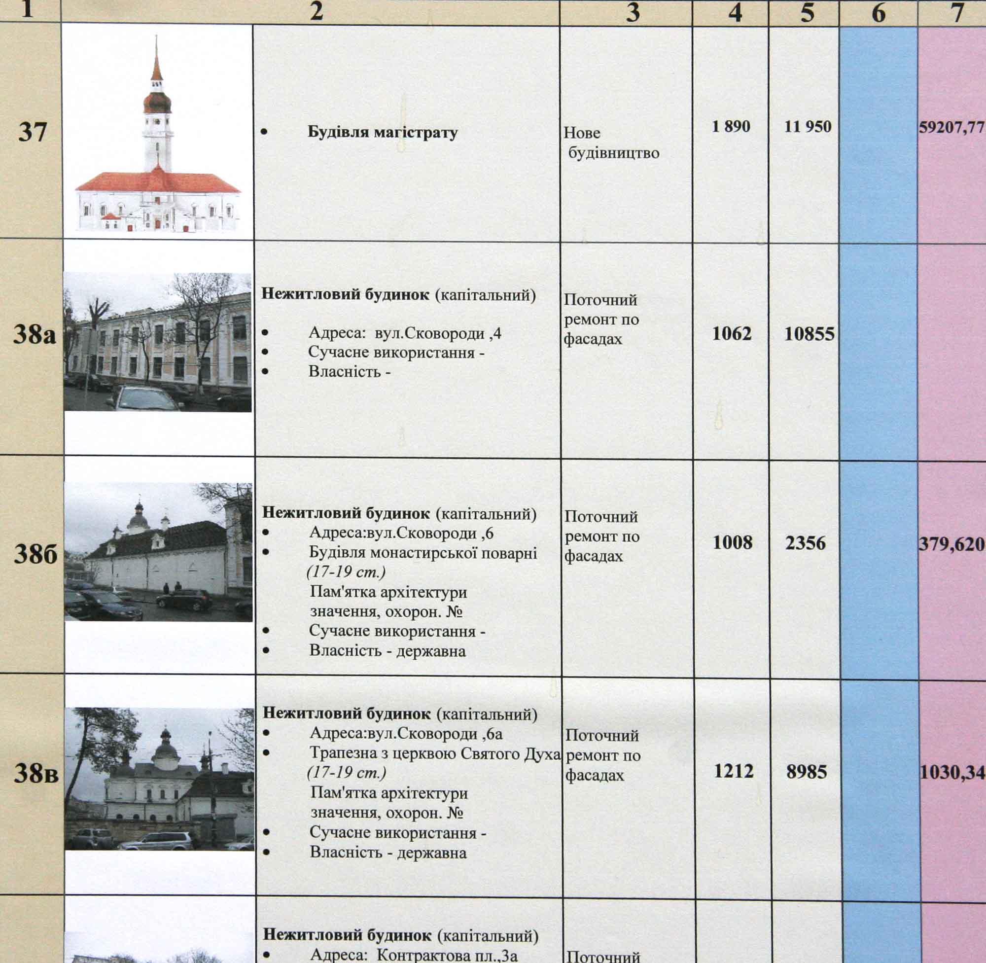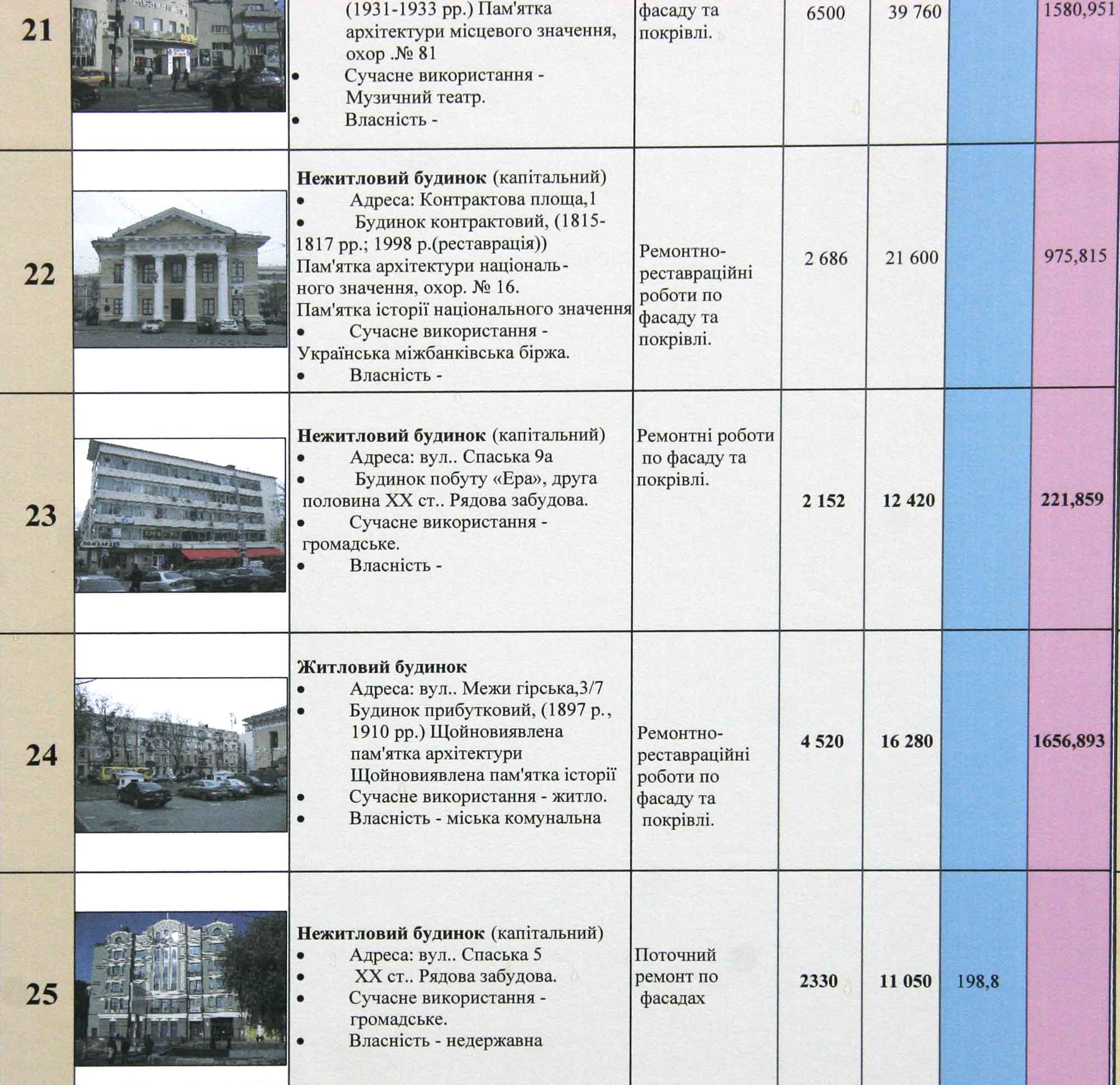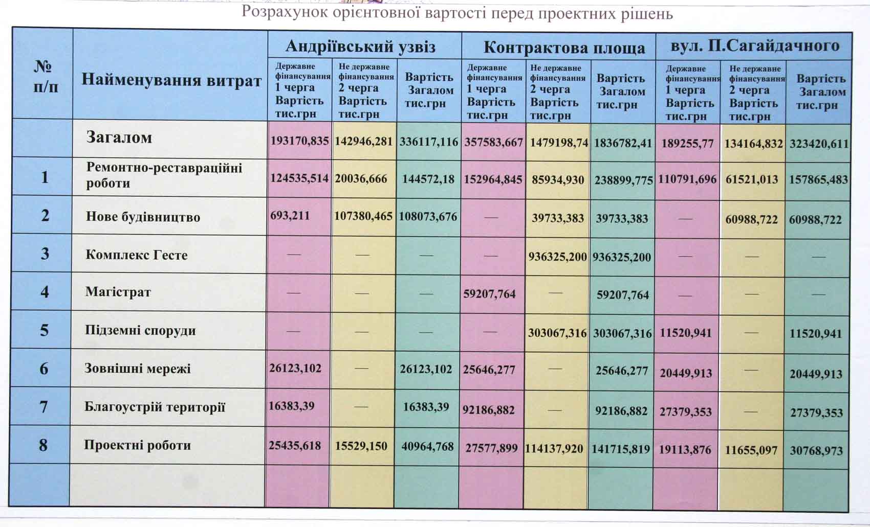 ТЭП по реконструкции Контрактовой площади (таблица 16 частей)