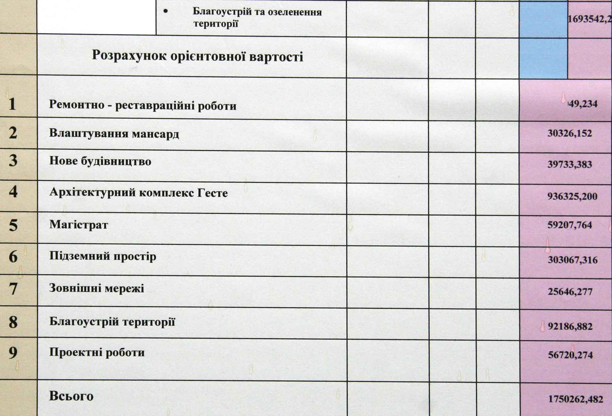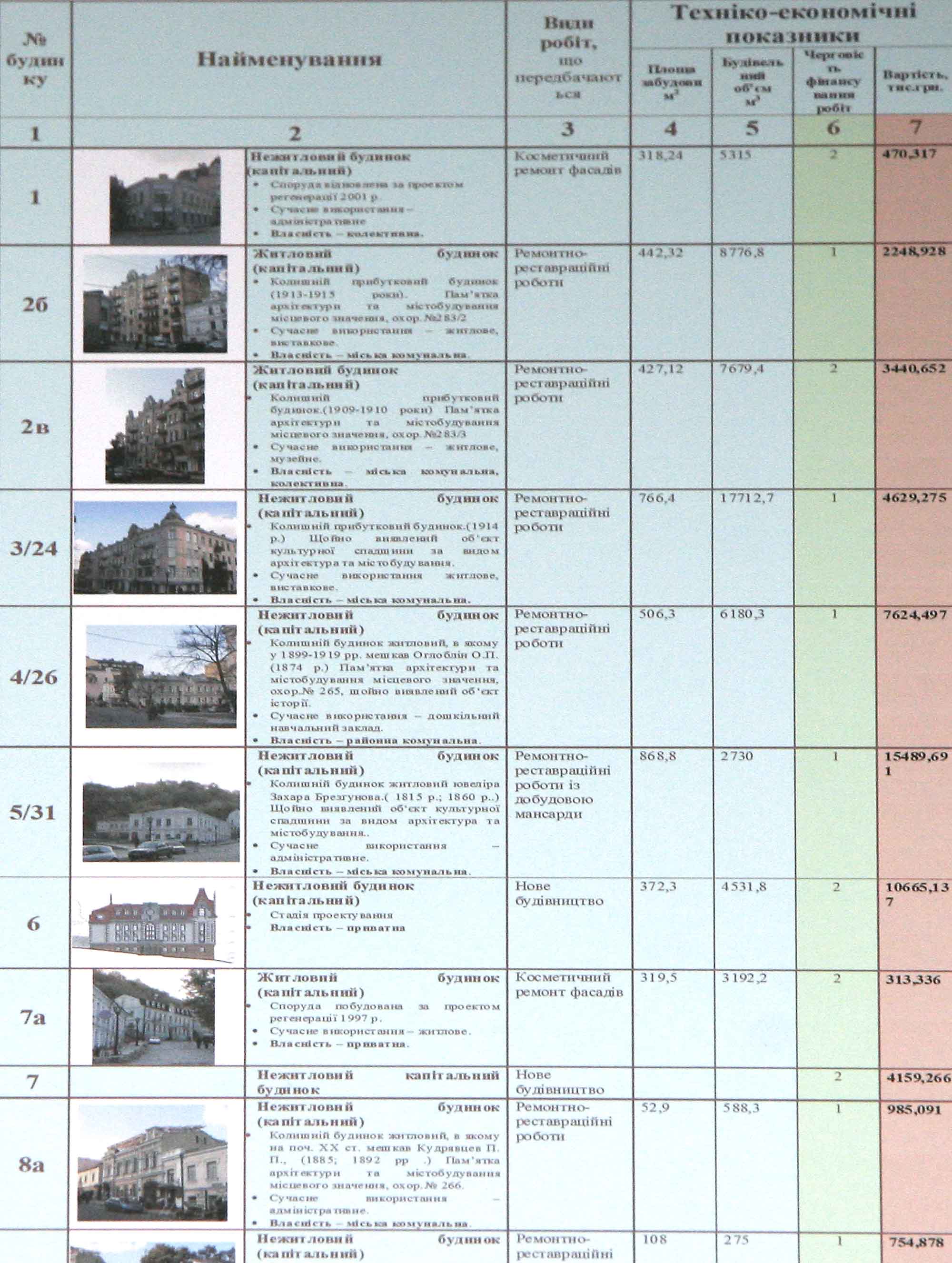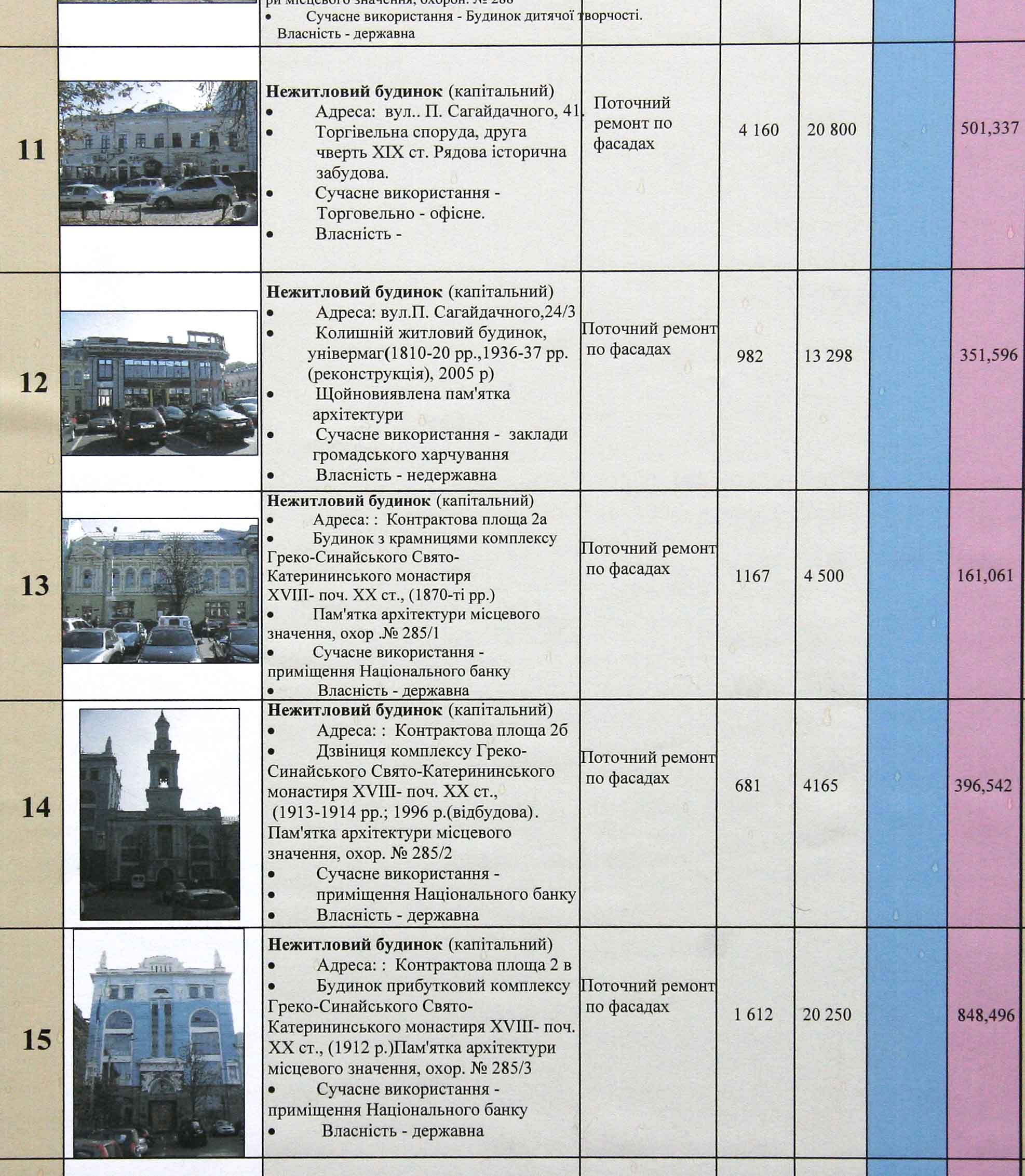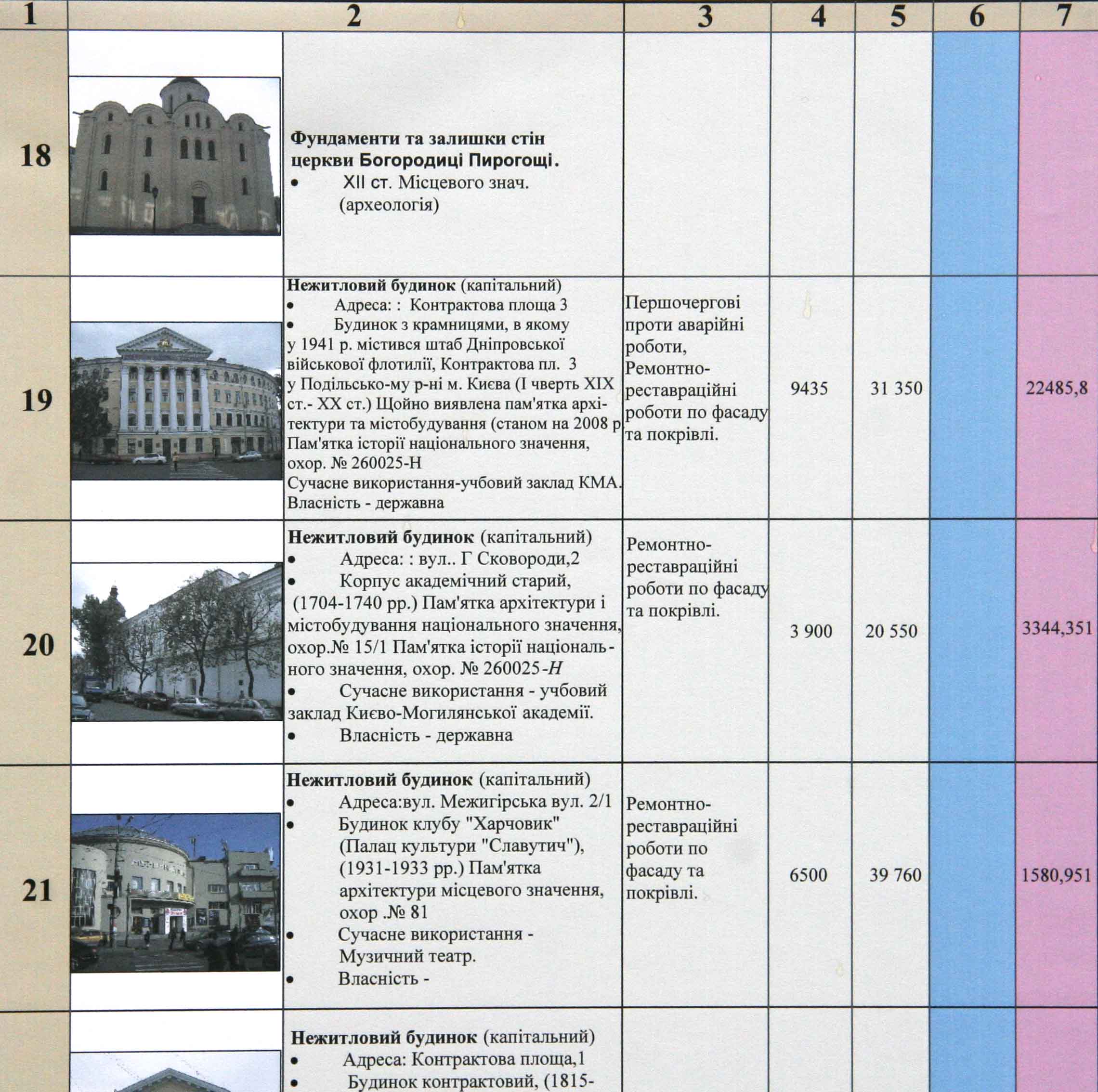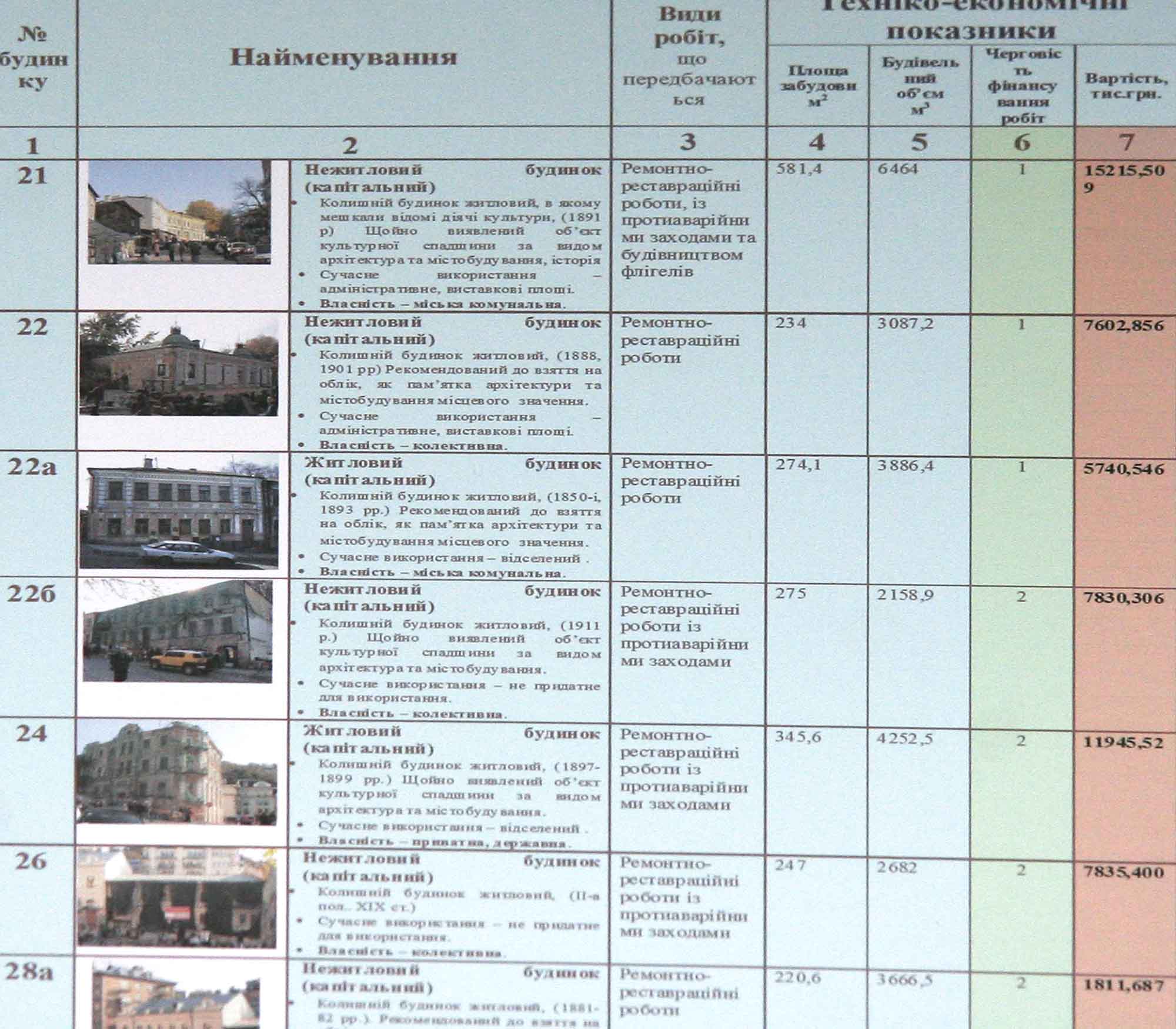 ТЭП по реконструкции Контрактовой площади (таблица 16 частей)