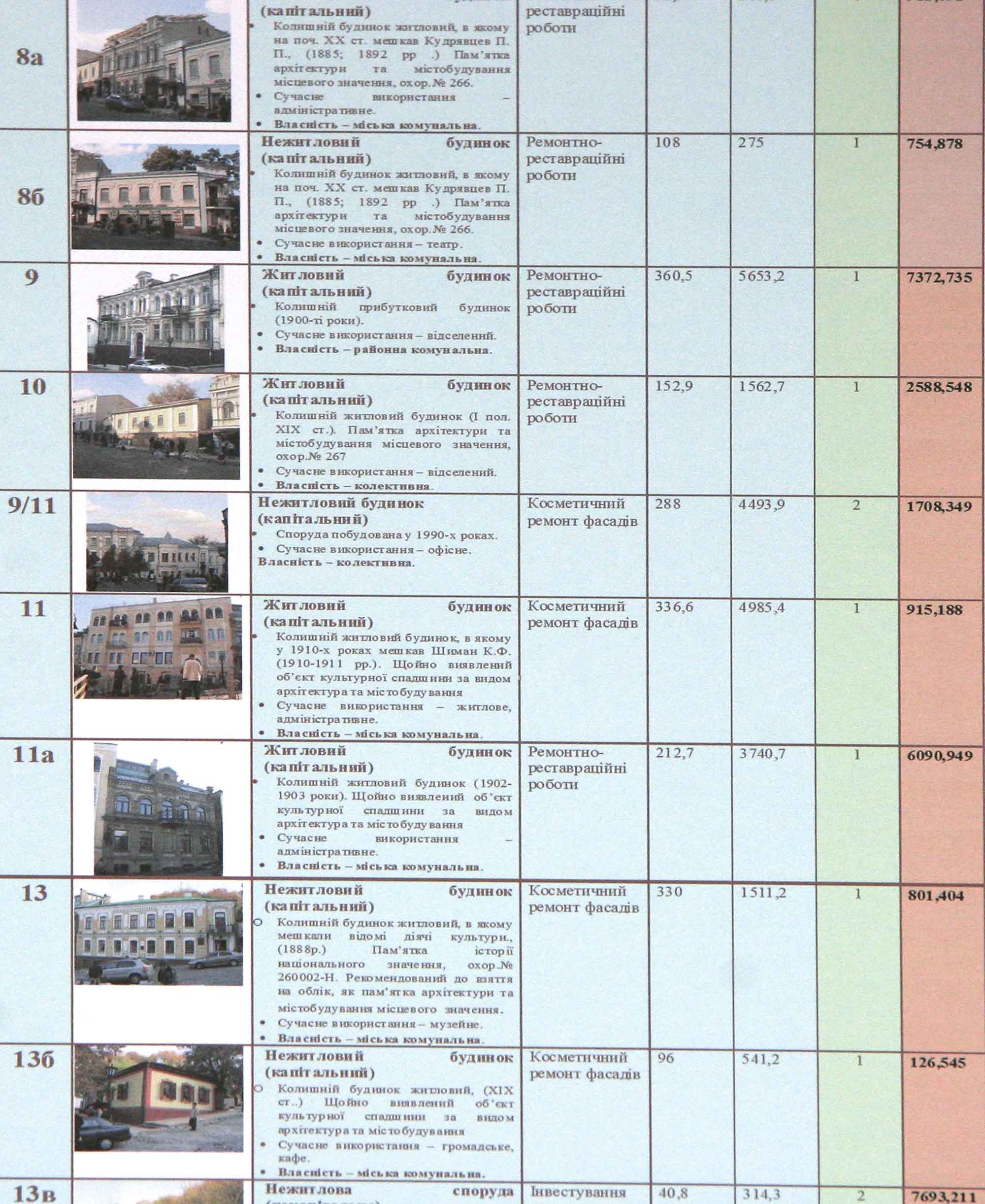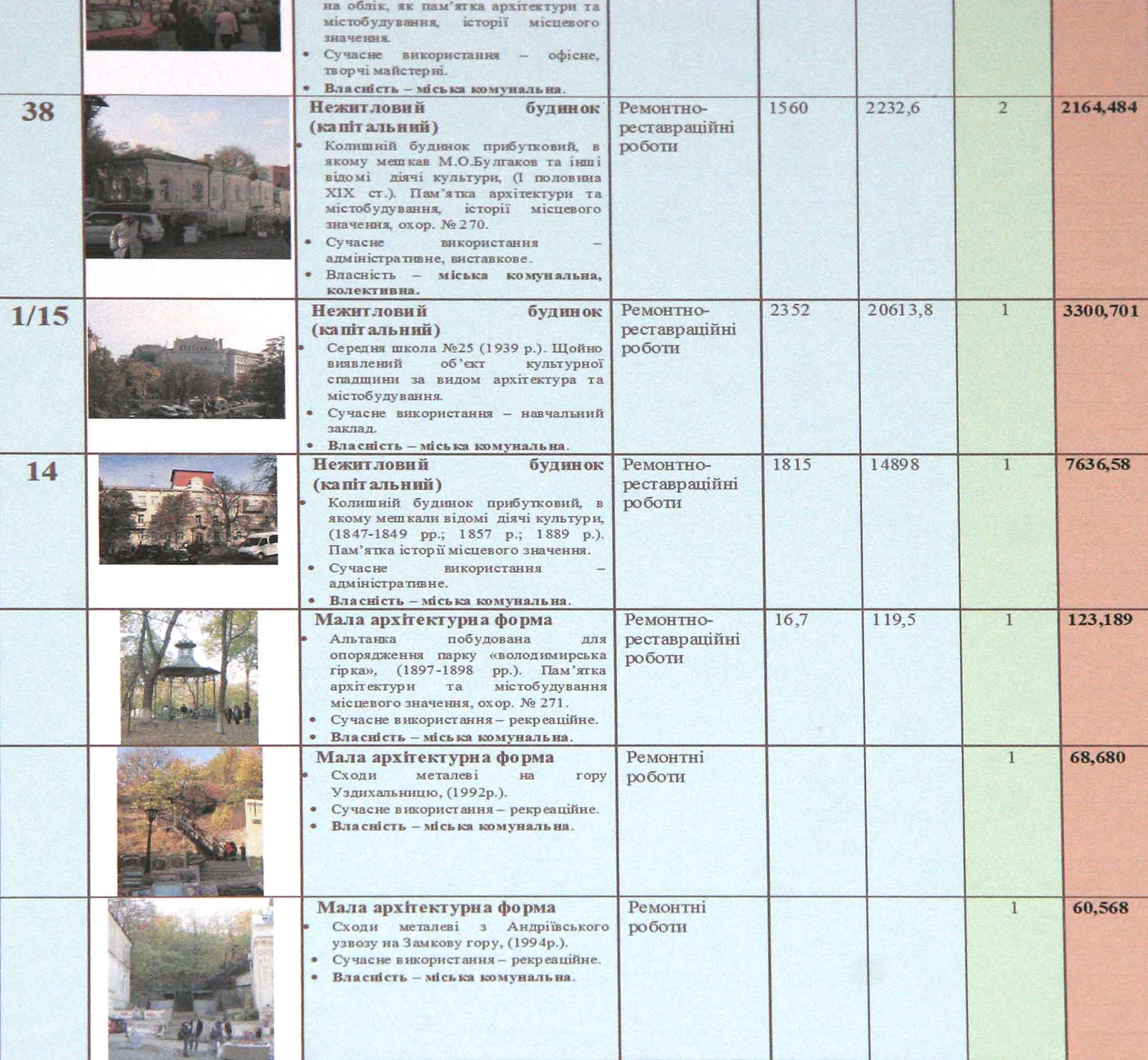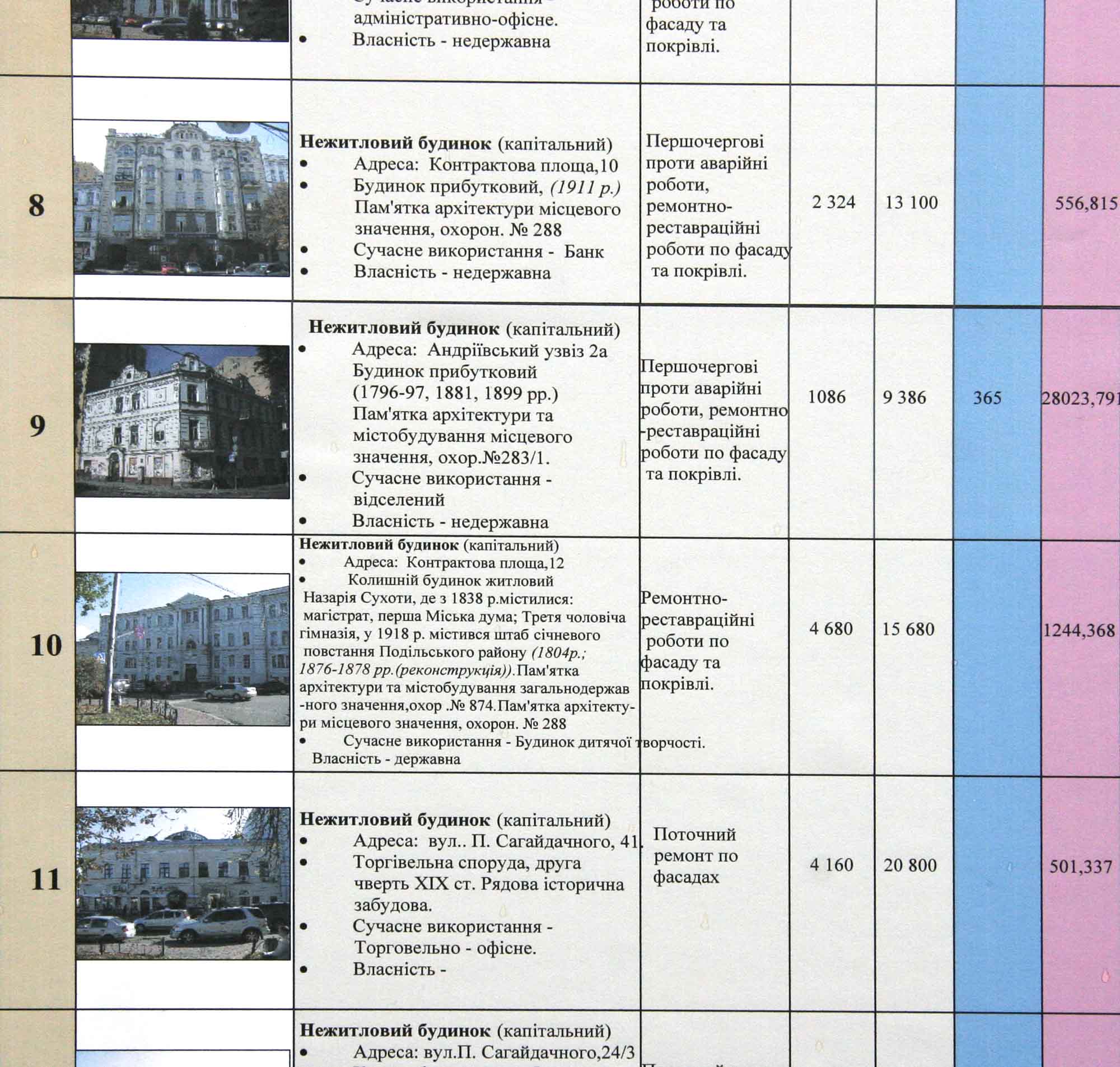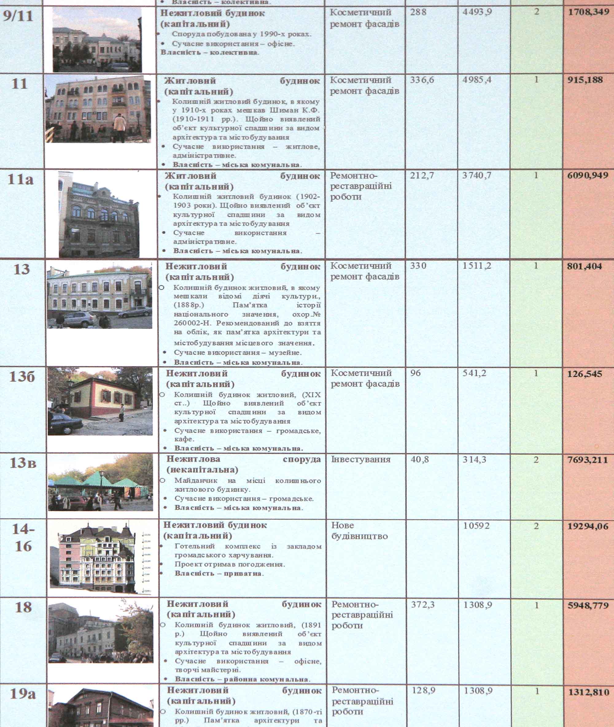 ТЭП по реконструкции Андреевского спуска (таблица 11 частей)
