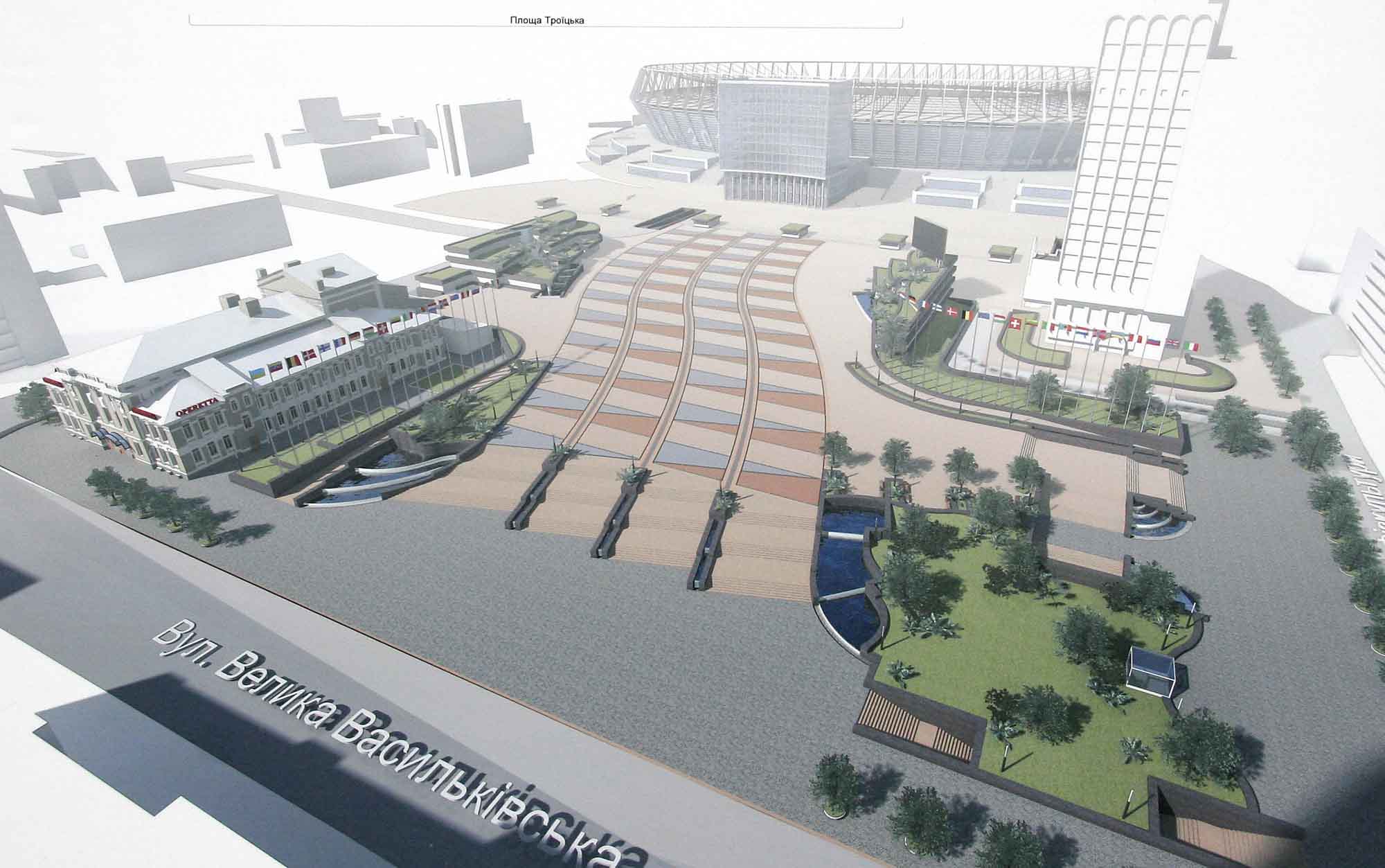 Концептуальные предложения комплексного благоустройства Троицкой площади перед НСК «Олимпийский», Печерский район города Киева